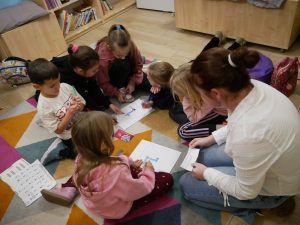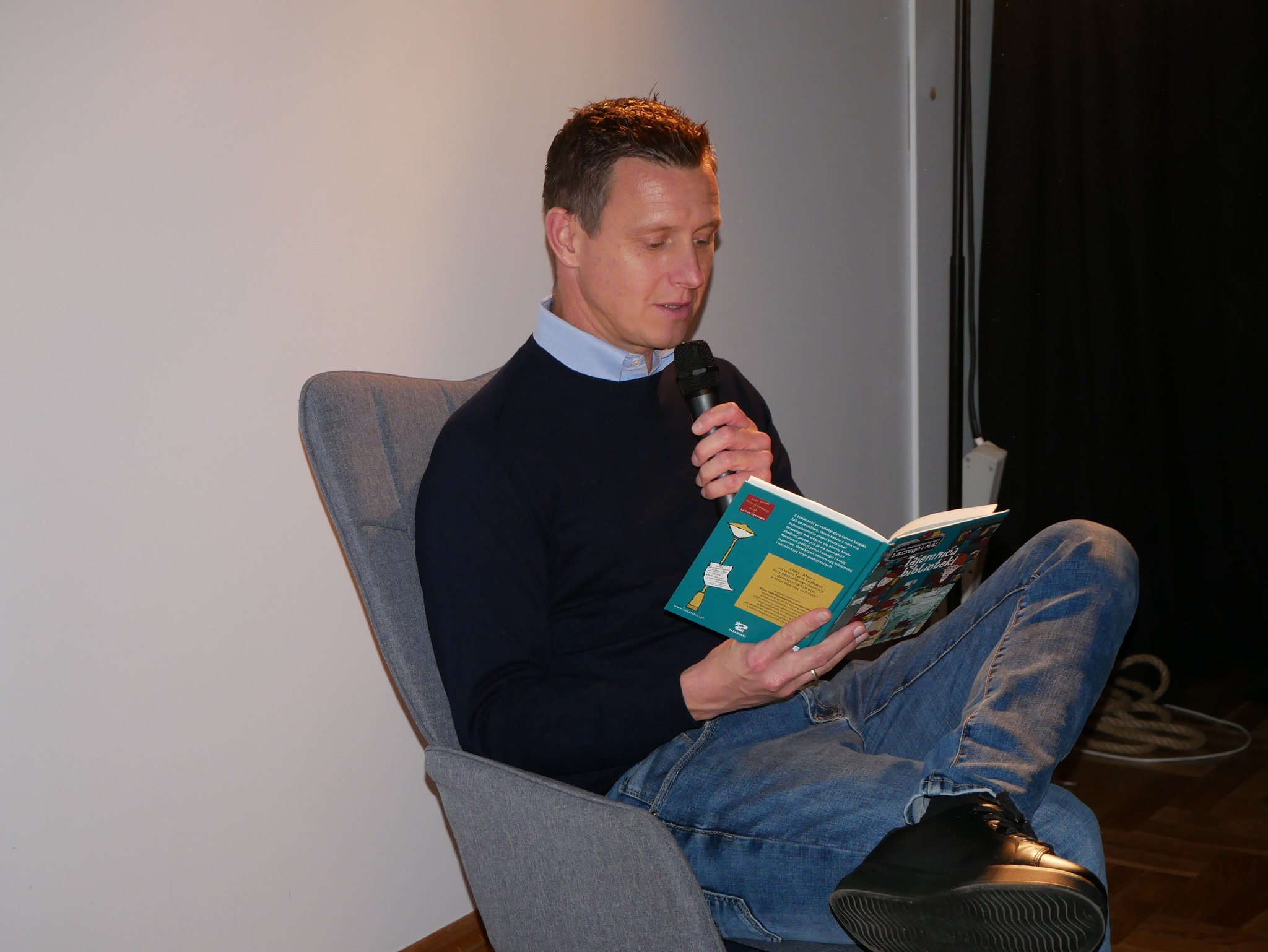 Nie zabrakło rebusów, łamigłówek i zabaw ruchowych, które rozgrzały dziecięce głowy i nogi! Gościem specjalnym wieczoru był Dyrektor Centrum Kultury Sportu i Rekreacji w Skale, Cezary Bejm, który przeniósł wszystkich do świata Lassego i Mai – małych detektywów z serii Martina Widmarka. Fragment z tomu „Tajemnica biblioteki” w jego interpretacji wciągnął młodych słuchaczy bez reszty.