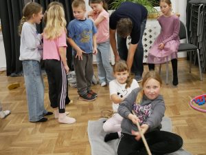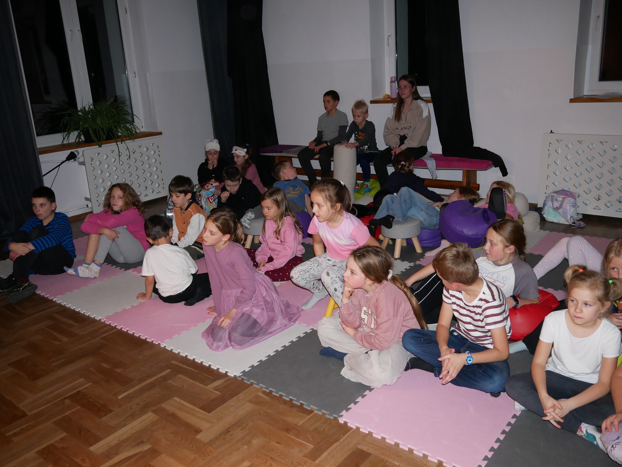 Głównym punktem programu był seans filmu „Biuro Detektywistyczne Lassego i Mai. Rabuś z pociągu”, który dostarczył dzieciom wielu emocji i stał się prawdziwą wisienką na torcie wieczoru! Nie zabrakło oczywiście pysznego popcornu i śmiechu, a magiczna atmosfera sprawiła, że czas minął błyskawicznie.