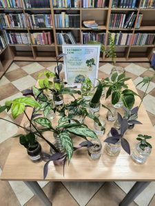 Ostatnią aktywnością związaną z tegoroczną Nocą Bibliotek był plantcrossing. Dla naszych gości przygotowaliśmy rośliny do zabrania do domu, a jednocześnie przyjmowaliśmy sadzonki od mieszkańców, którzy chcieli się nimi podzielić. Szczególne podziękowania kierujemy do Pani, która przyniosła dużą ilość pelargonii i zielistki – dziękujemy za ten piękny gest! Nadal mamy kilka roślin do rozdania, więc serdecznie zapraszamy wszystkich chętnych, którzy chcieliby przygarnąć zielonego przyjaciela.
