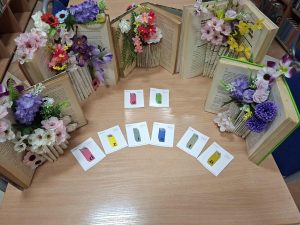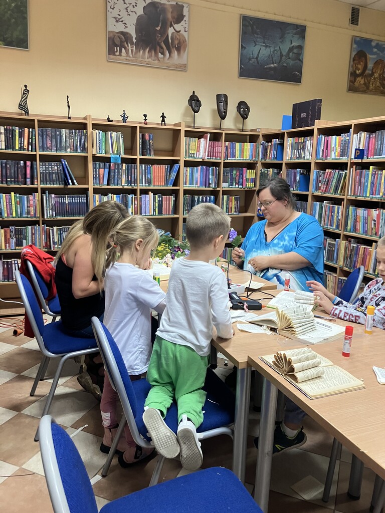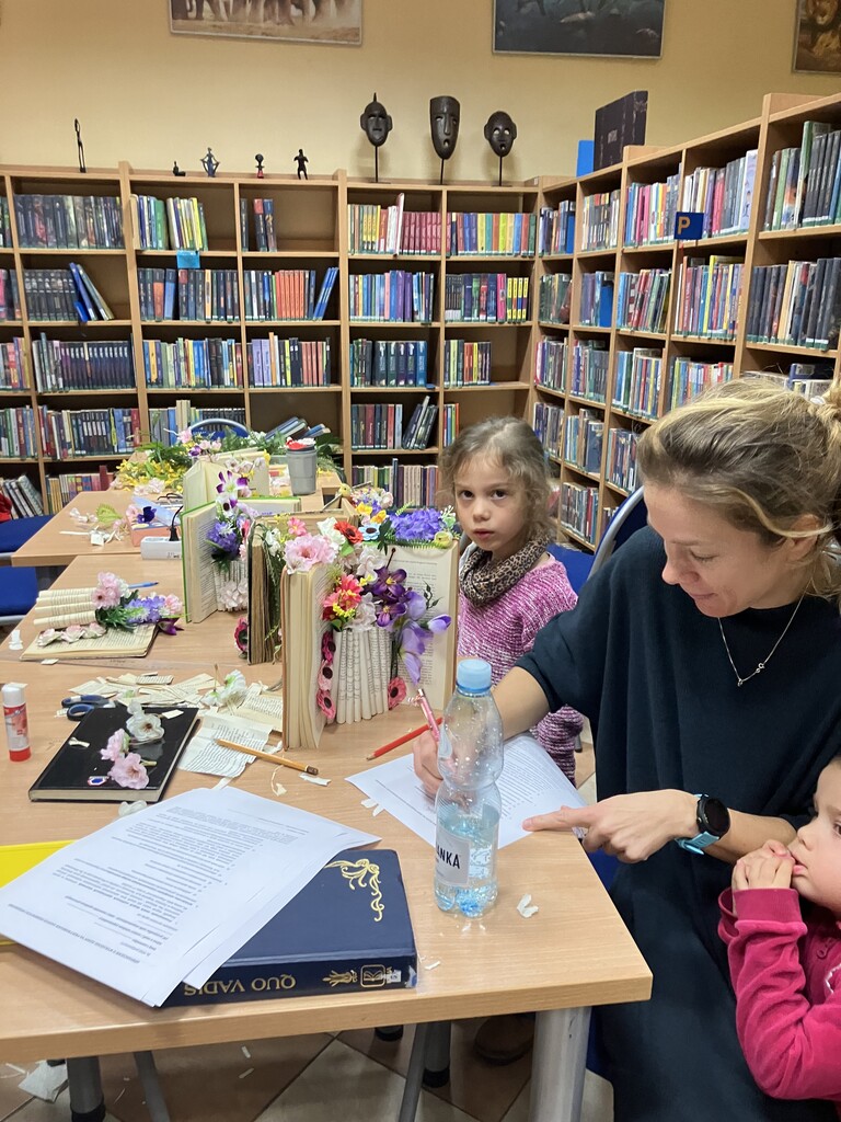 Punktem wyjścia była stara, pożółkła książka, która mogłaby trafić na makulaturę, jednak dzięki pomysłowości uczestników i kilku artystycznym zabiegom zyskała nowe życie, stając się wyjątkową ozdobą wnętrza. Efekty prac przerosły nasze oczekiwania – zachwyciły wszystkich i zainspirowały do tworzenia kolejnych dzieł, które udowadniają, że niepotrzebne książki mogą zamienić się w coś pięknego i użytecznego.