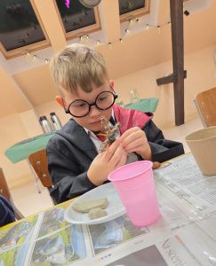 🔸 Później był quiz z pytaniami dotyczącymi książki „Harry Potter i Komnata Tajemnic”, a następnie zabawa „Skaczące żabki” - za wysiłek każdy otrzymał czekoladową żabę! 🐸🍫