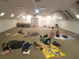 Po warsztatach i niespodziance kulinarnej, w towarzystwie ulubionych pluszaków obejrzeliśmy film „Biuro detektywistyczne Lassego i Mai. Rabuś z pociągu”.