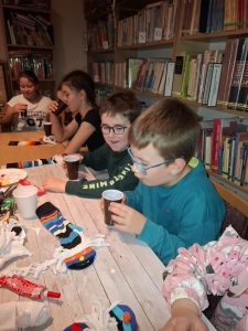 W piątkowe popołudnie 17 października dzieci z gminy Kołaczkowo spotkały się w BP w Sokolnikach by twórczo spędzić czas. Hasło Do dzieła! zainspirowało do stworzenia wspaniałych pacynek ze skarpetek. Przy okazji dzieci dowiedziały się, że występować w teatrze czy filmie mogą nie tylko ludzie, ale też lalki, kukiełki czy właśnie pacynki - animowane dłonią aktora. Duże zaangażowanie i pomysłowość skutkowały stworzeniem niesamowitych dzieł.