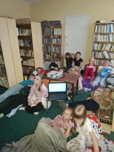 Biblioteka zmieni się w przytulną, pełną poduszek i nastrojowego światła przestrzeń.
