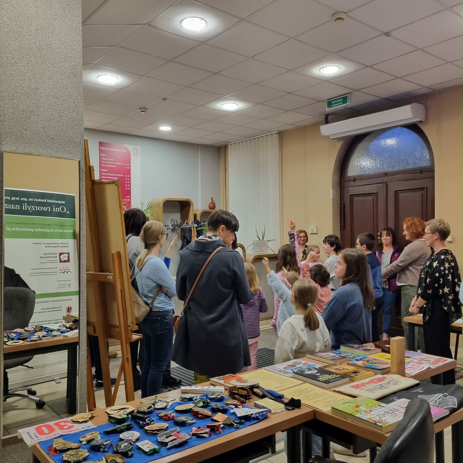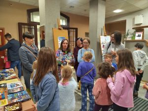 👉 Wśród odwiedzających wystawę znalazły się Panie, które z czułością interpretowały wiersze oraz rodzice z dziećmi, z radością wypatrujące następnych wydarzeń organizowanych tego wieczoru przez Bibliotekę.