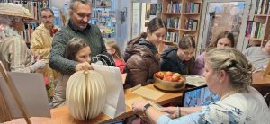 Nie zabrakło również miejsca dla artystów! Dzieci i dorośli mogli dać upust swojej kreatywności, malując siedlecki park jesienią. Powstały barwne prace pełne drzew i kolorowych liści – każda z nich była wyjątkowa. Wiele emocji wzbudziło również poszukiwanie ukrytych skarbów księżnej, podczas którego uczestnicy rozwiązywali zagadki i odkrywali skarby ukryte w bibliotecznych zakamarkach. Wśród gości przechadzała się także dwórka księżnej, opowiadając o modzie i strojach XVII wieku.