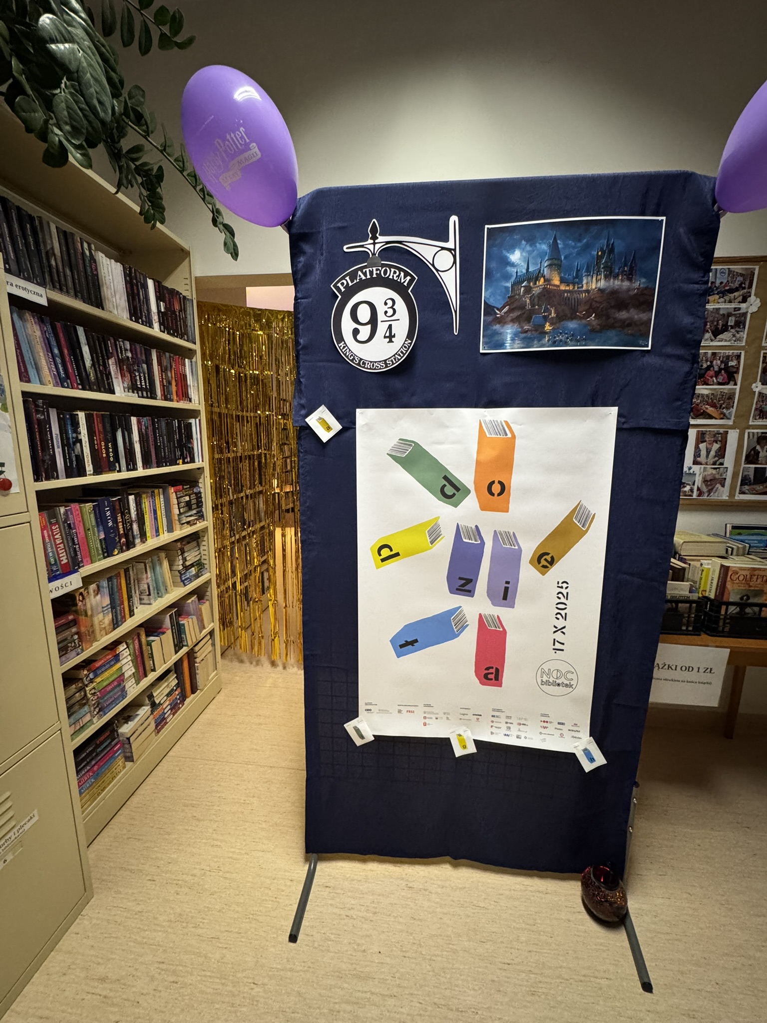 Tego dnia biblioteka zmieniła swój wygląd – pojawił się peron 9 i 3/4, kolorowe balony i dekoracje z wizerunkami bohaterów serii. Tak zaaranżowana przestrzeń od razu wprowadzała uczestników w temat spotkania. W wydarzeniu wzięli udział zarówno stali czytelnicy, jak i osoby, które dopiero poznają serię o młodym czarodzieju.