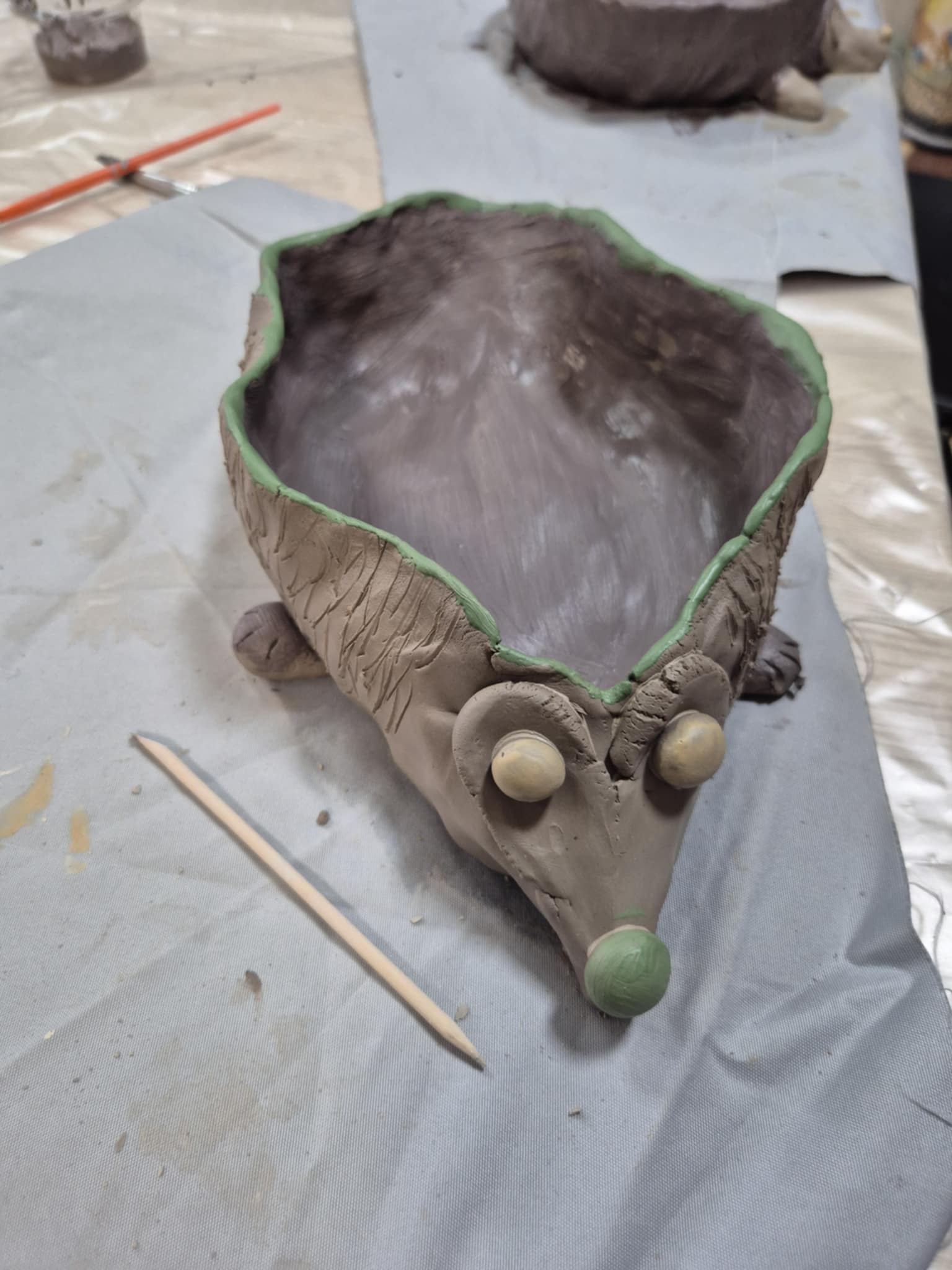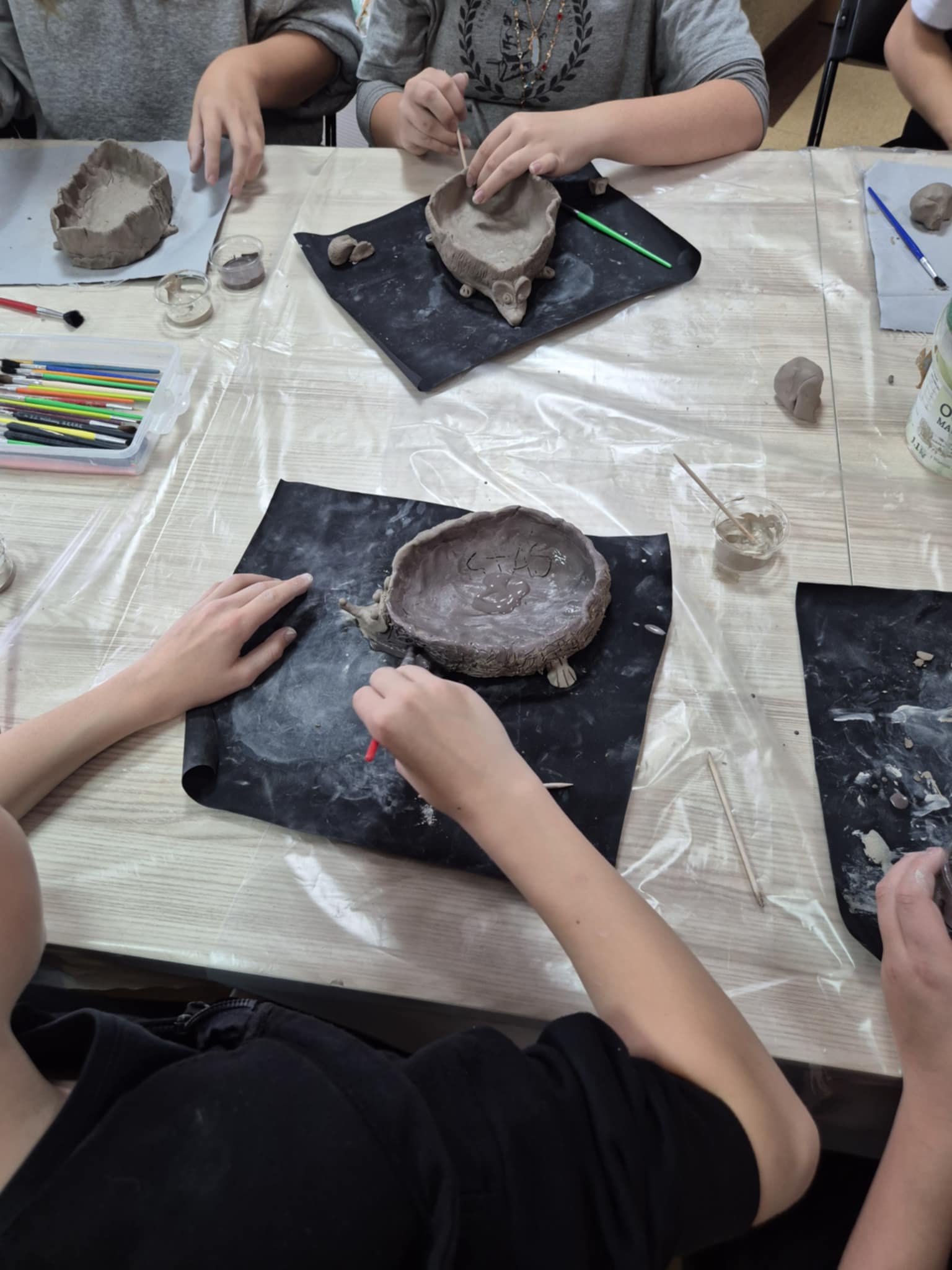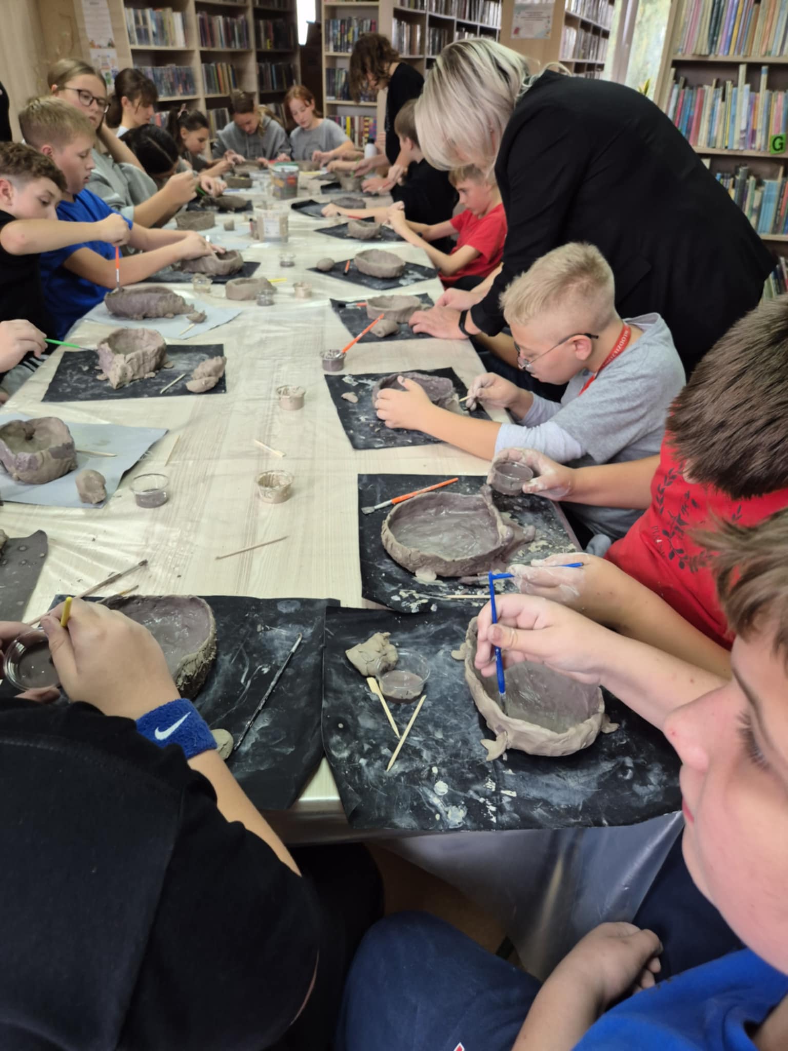 Na warsztatach ceramicznych młodzież z pasją "wzięła się do dzieła", tworząc z gliny urocze jeże. Te małe arcydzieła wkrótce przejdą proces wypalania, stając się trwałą pamiątką z wydarzenia.