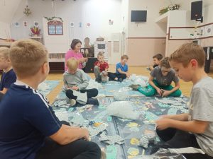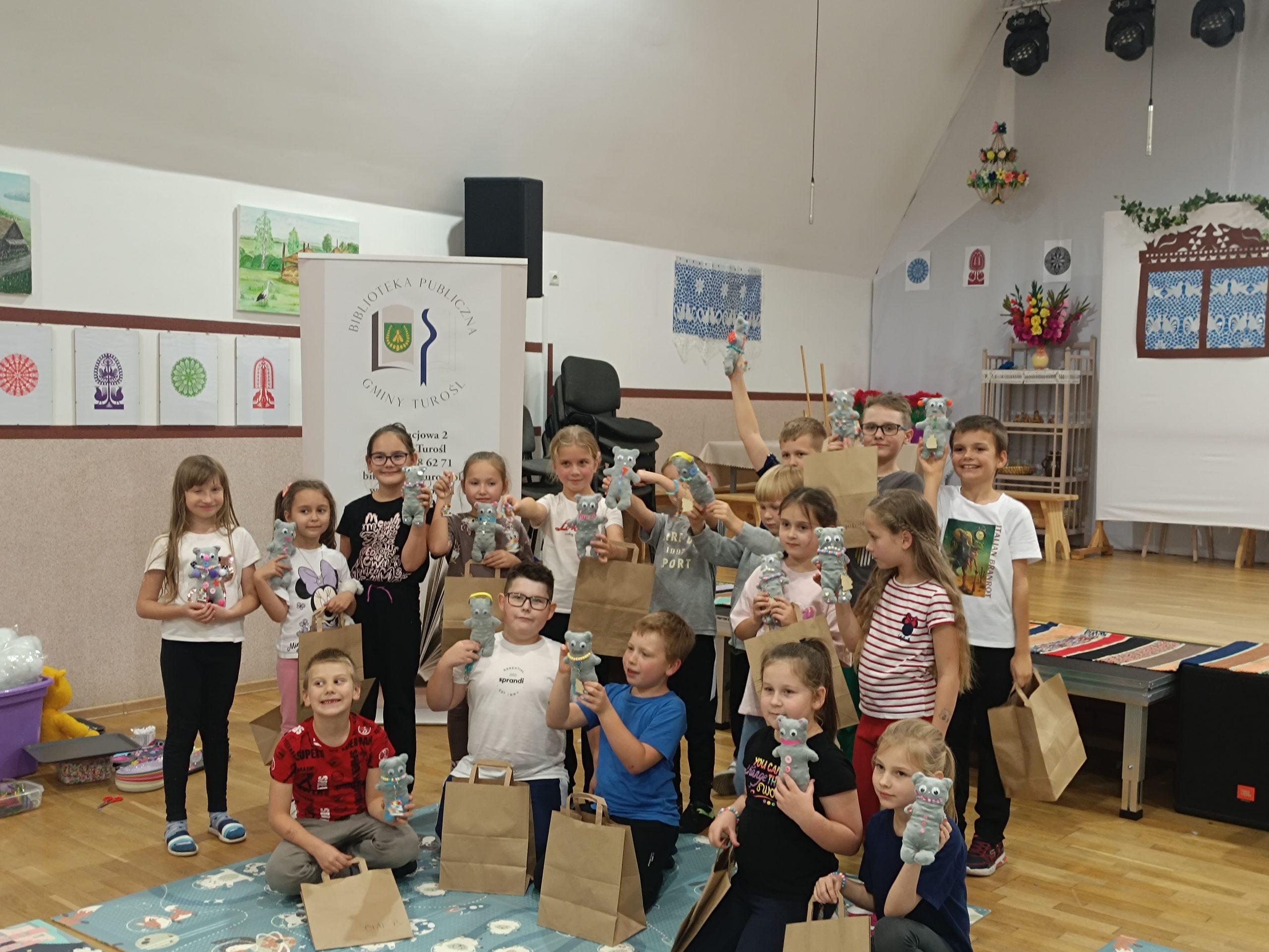 W części warsztatowej dzieci mogły wykazać się kreatywnością – własnoręcznie wykonały pluszowe misie oraz książkowe breloczki, które zabrały do domu jako pamiątkę tego wyjątkowego wieczoru.