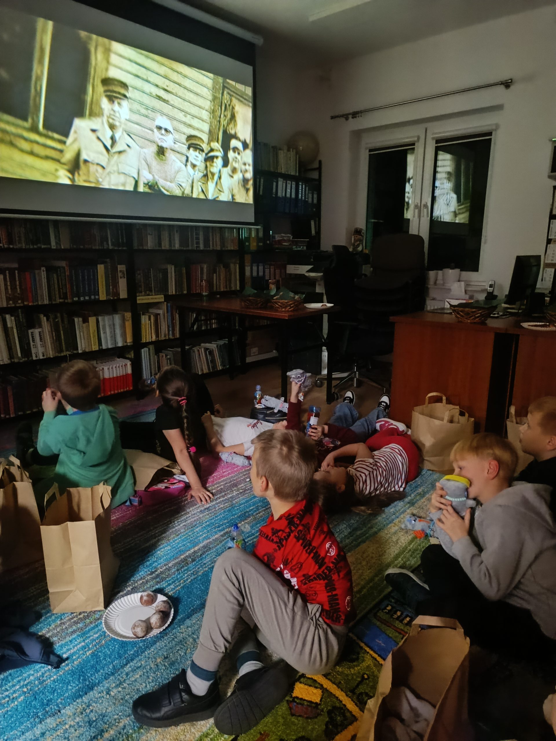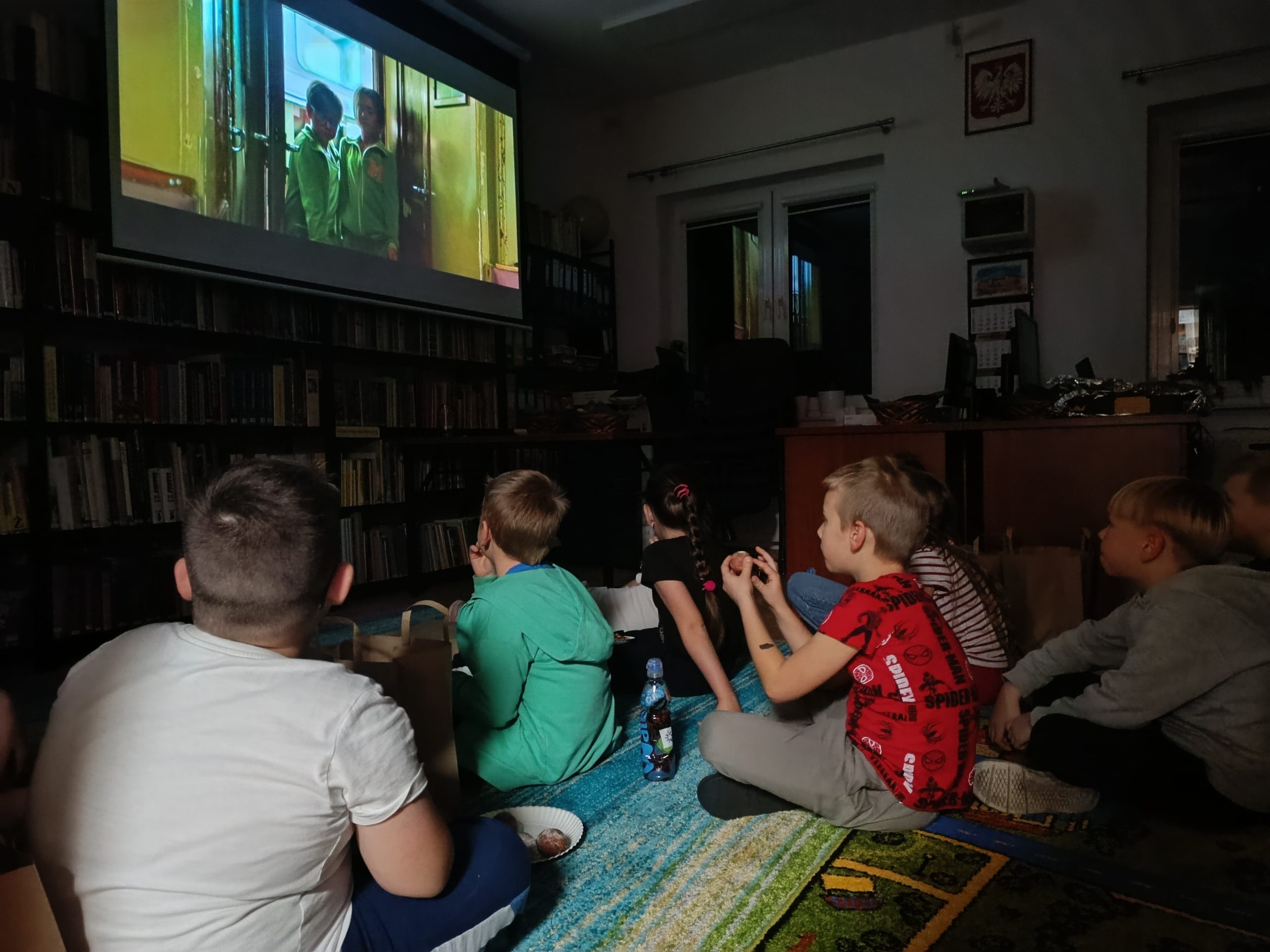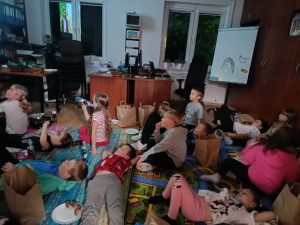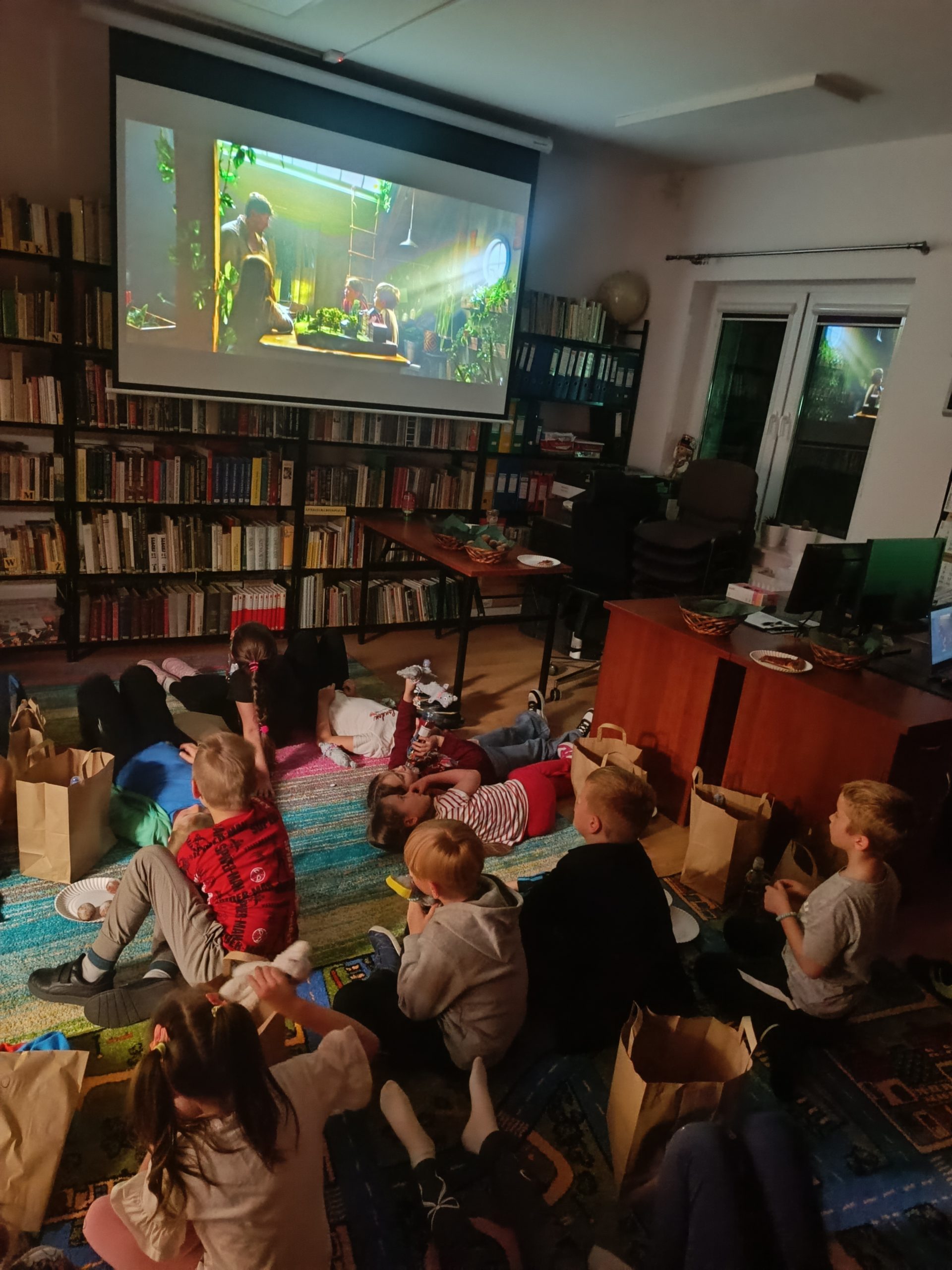 Na zakończenie wszyscy z zainteresowaniem obejrzeli film z serii o Biurze Detektywistycznym Lassego i Mai – „Rabuś w pociągu”. To była pełna radości, twórczości i dobrej zabawy noc!