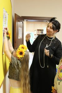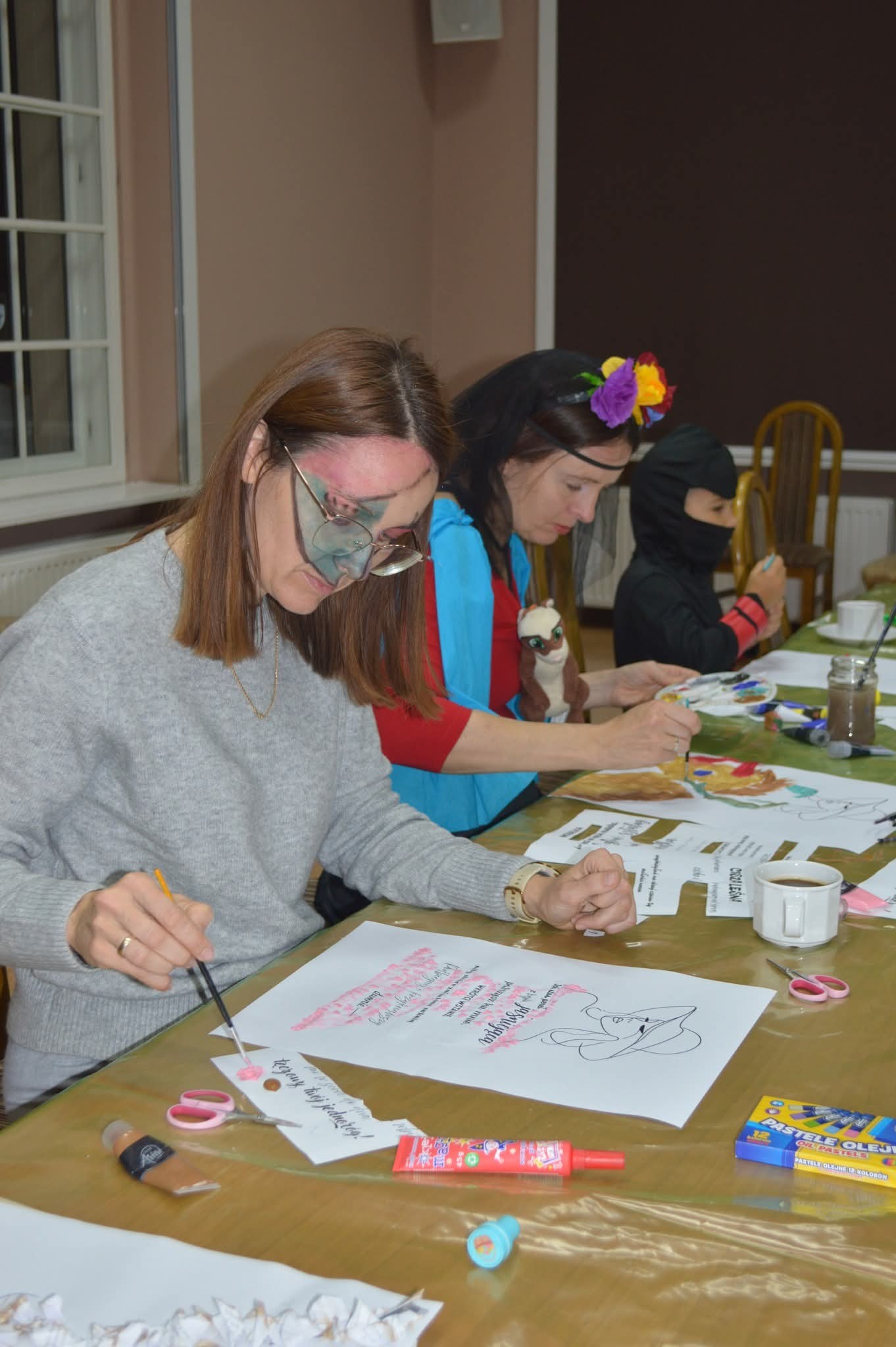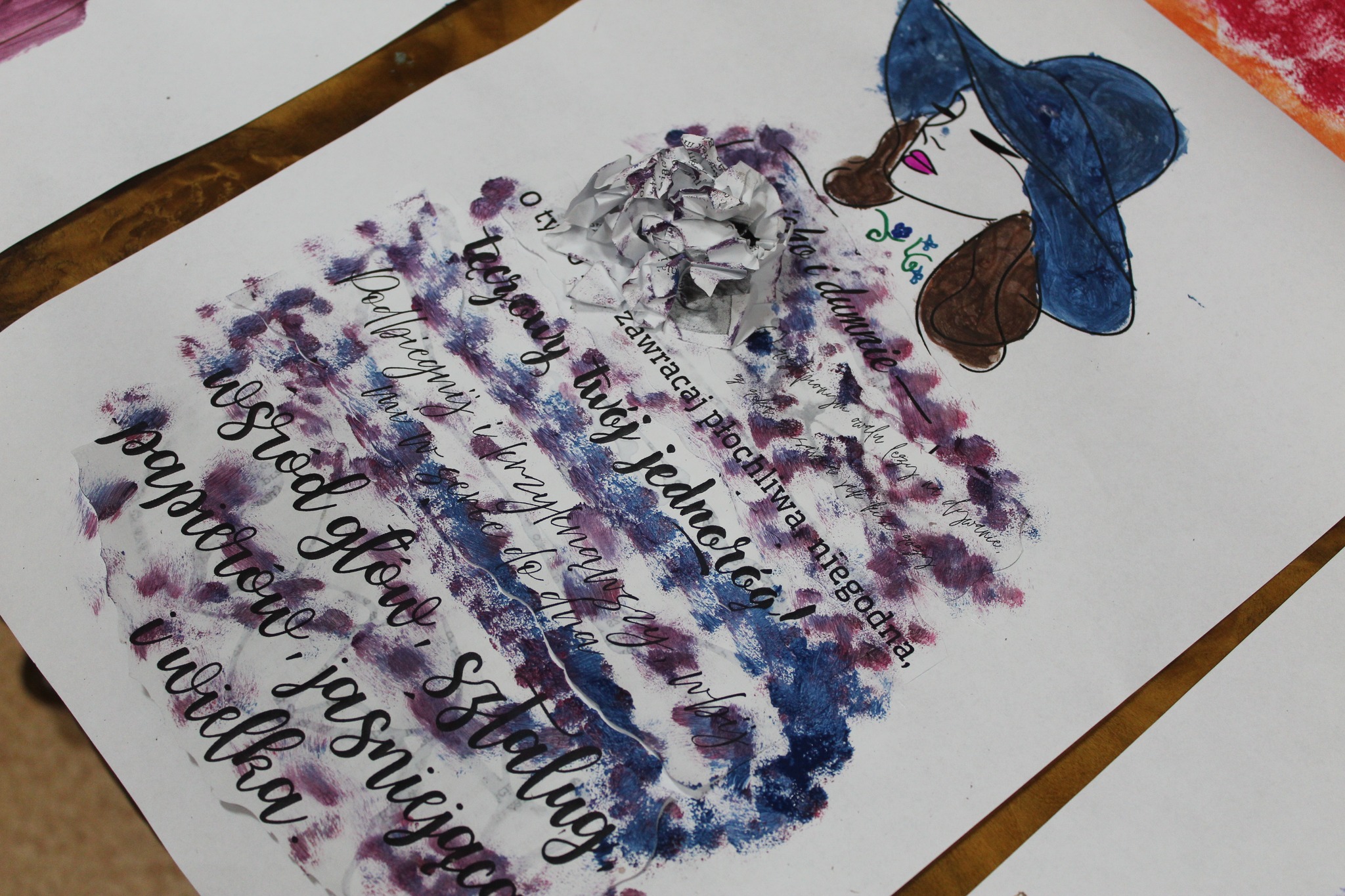 Ostatnim zadaniem było stworzenie własnego rękodzieła literackiego – połączenia sztuki słowa i plastyki. Uczestnicy wykonali kolaże i kaligramy, czyli poetyckie zabawy formą, w których tekst staje się jednocześnie ilustracją. W ten sposób powstały małe dzieła sztuki. We wszystkich pracach była widoczna poezja patronki roku 2025 Marii Pawlikowskiej-Jasnorzewskiej.