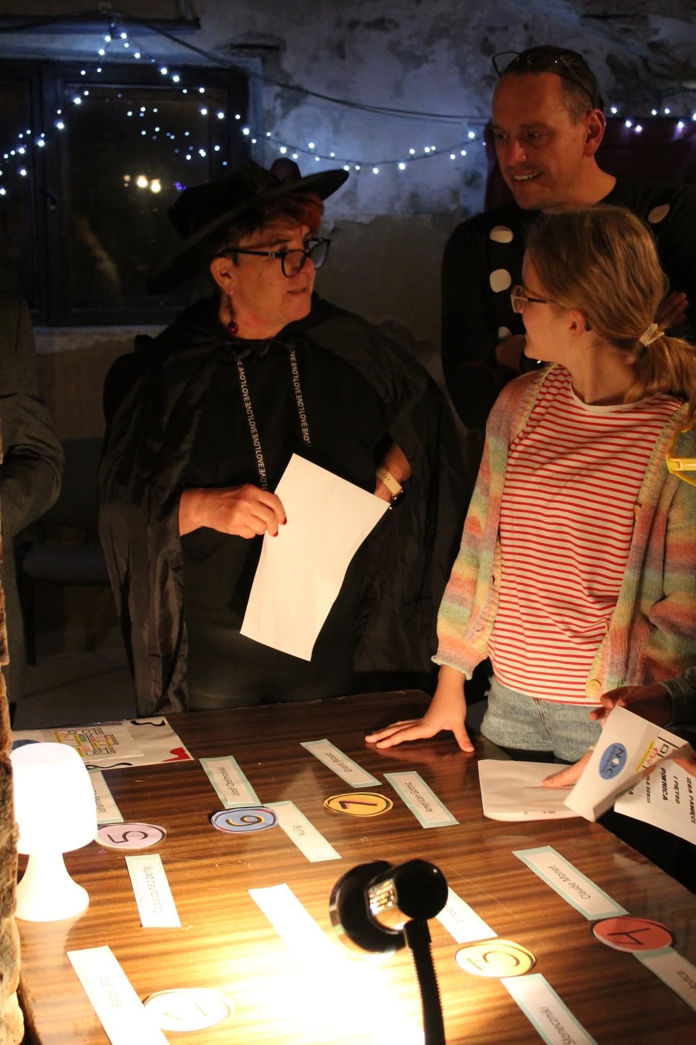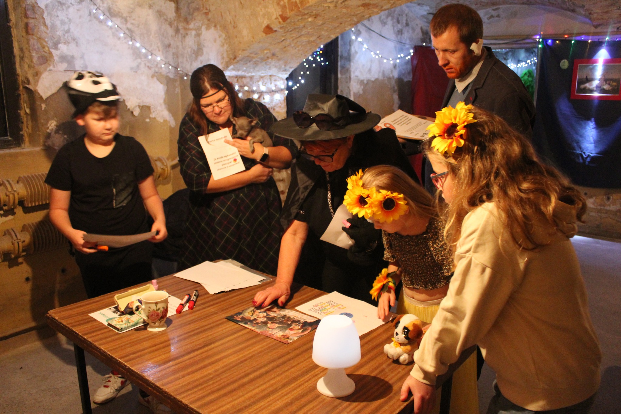 W piątkowy wieczór w Pałacu czekała na chętnych wyjątkowa gra pełna literatury, muzyki, filmu i sztuki. Każdy etap odkrywał nowe oblicza dzieła. Nie zabrakło poezji, bo towarzyszyła nam patronka roku 2025, Maria Pawlikowska-Jasnorzewska. Jej wiersze stały się punktem wyjścia do zabawy słowem i tworzenia pięknych kaligramów.