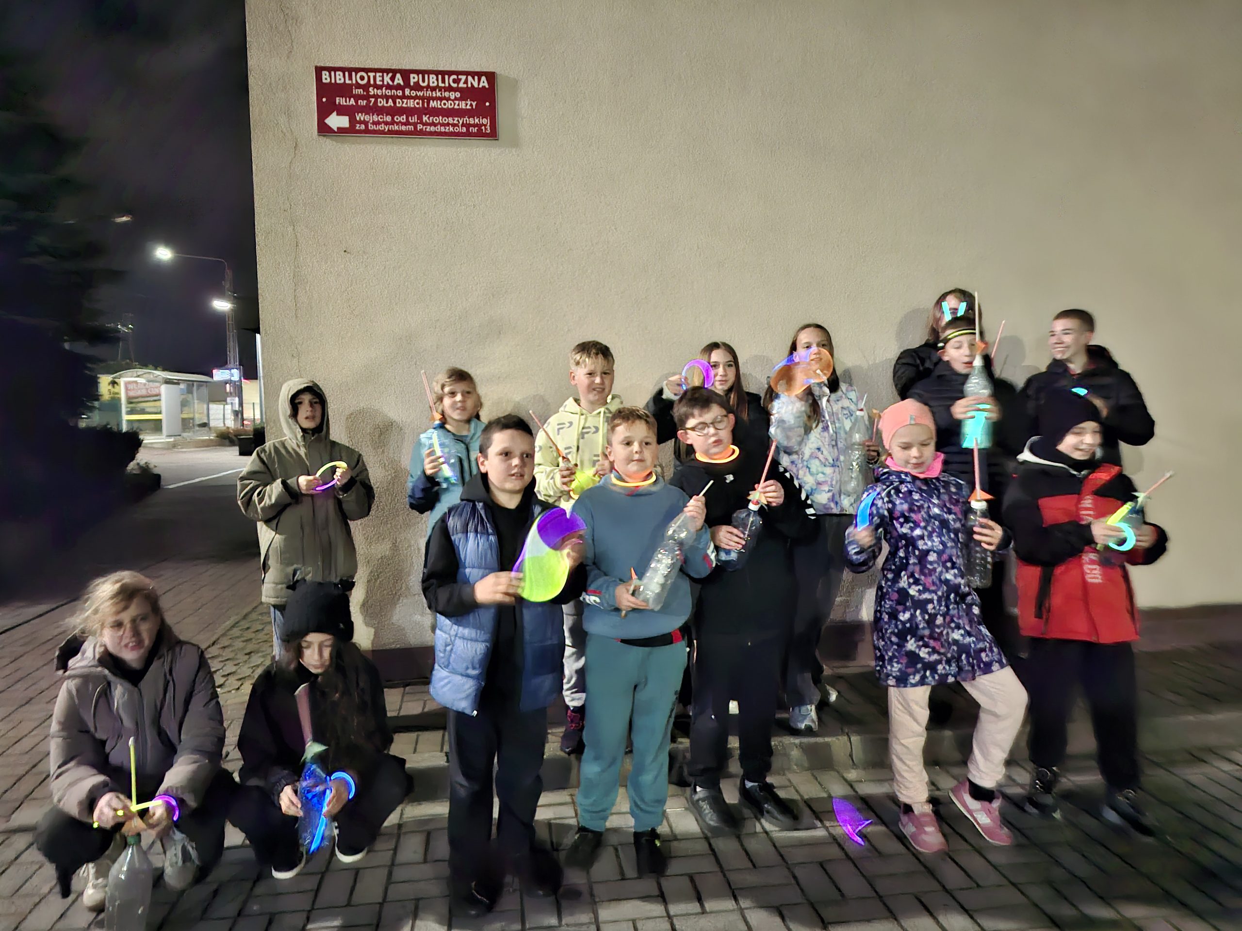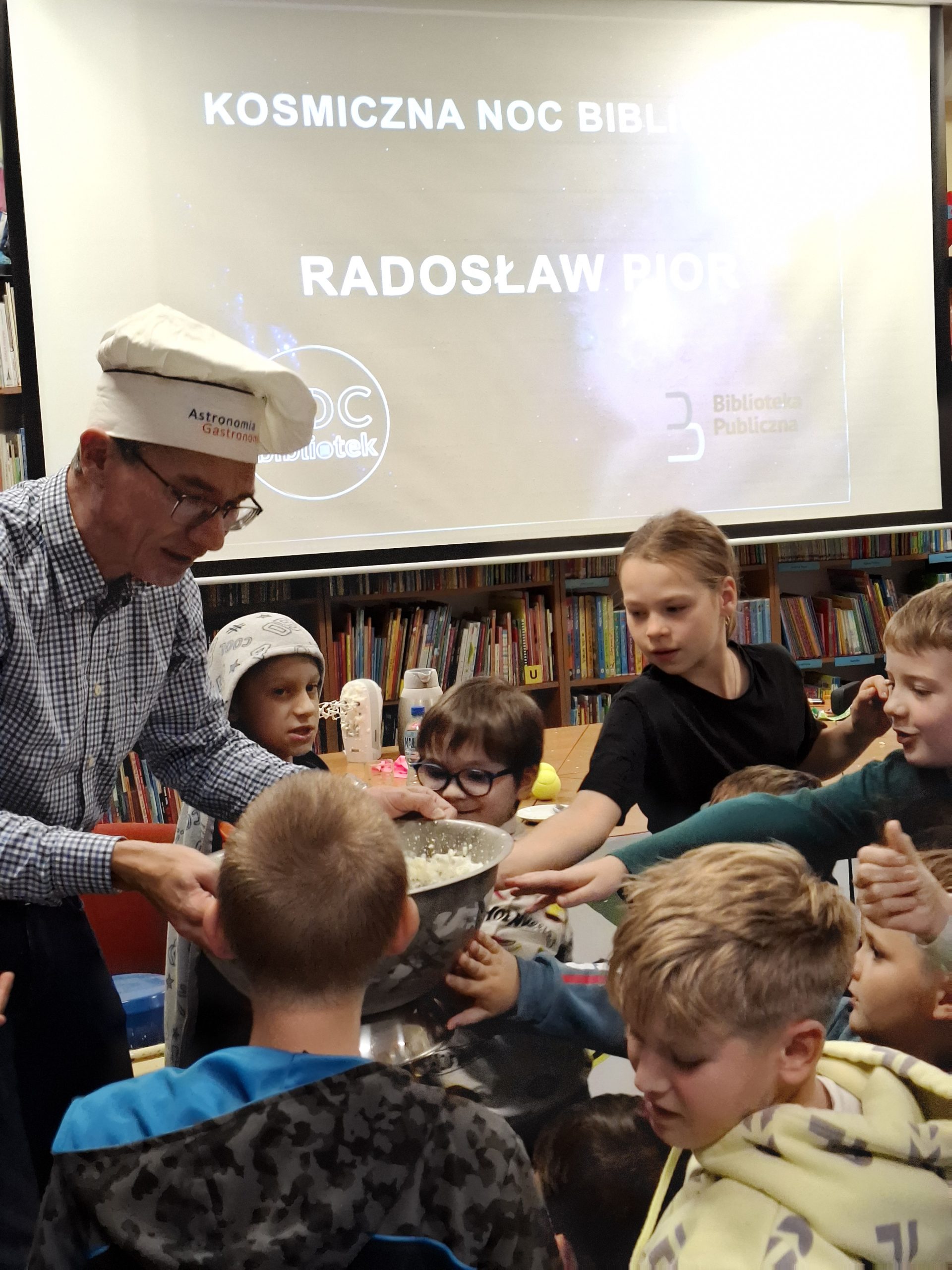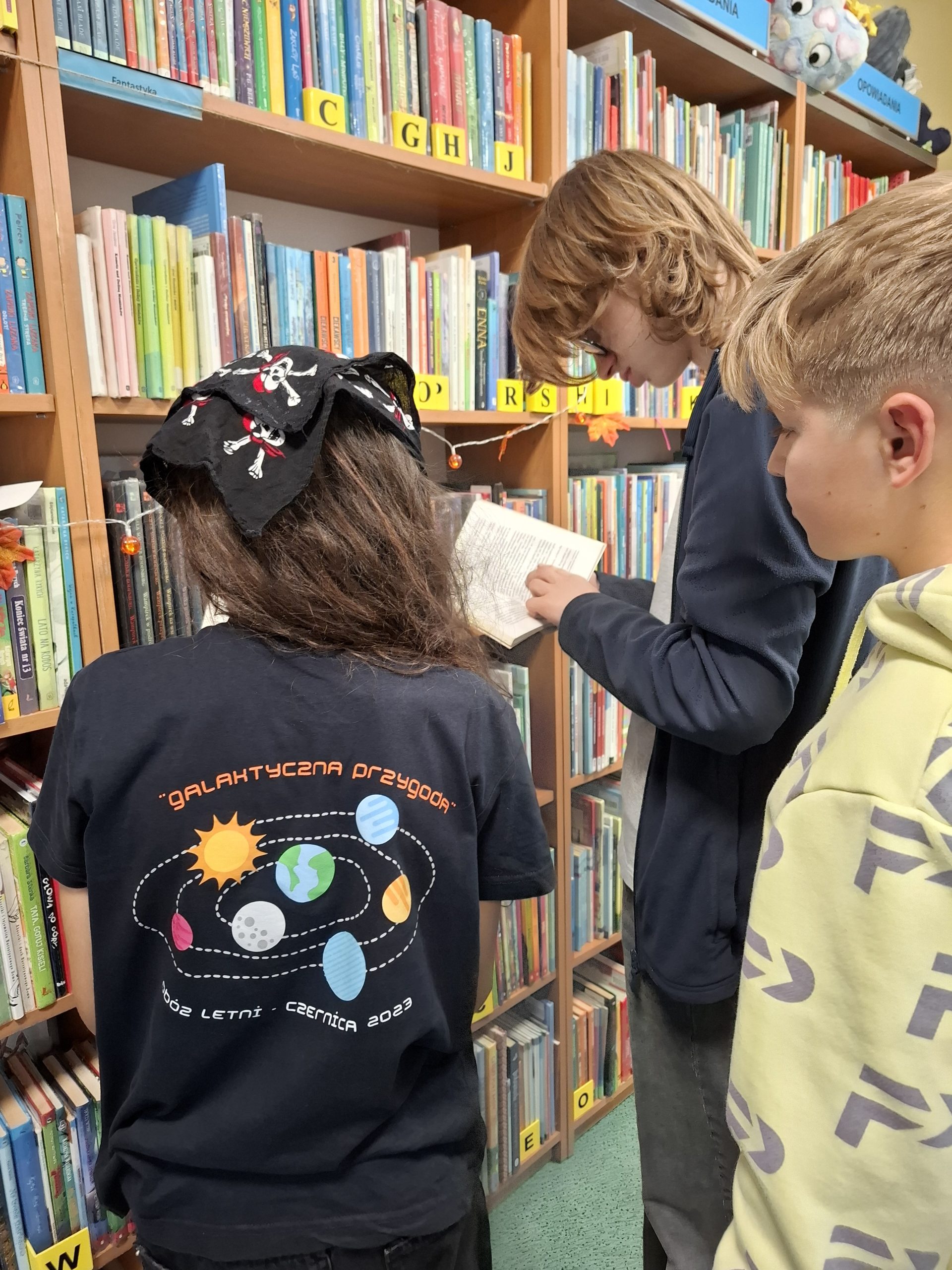 Nieodłącznym punktem nocnych spotkań jest wspólna kolacja – pizza. A tuż po posiłku przyszedł czas na tradycyjne czytanie na dywanie z latarkami w ręku. Ostatnim wyzwaniem czekającym na uczestników nocy była czytelnicza gra „Gwiezdny alfabet”, która wymagała poszukiwania odpowiedzi na dwanaście kosmicznych pytań i rozkodowania haseł.