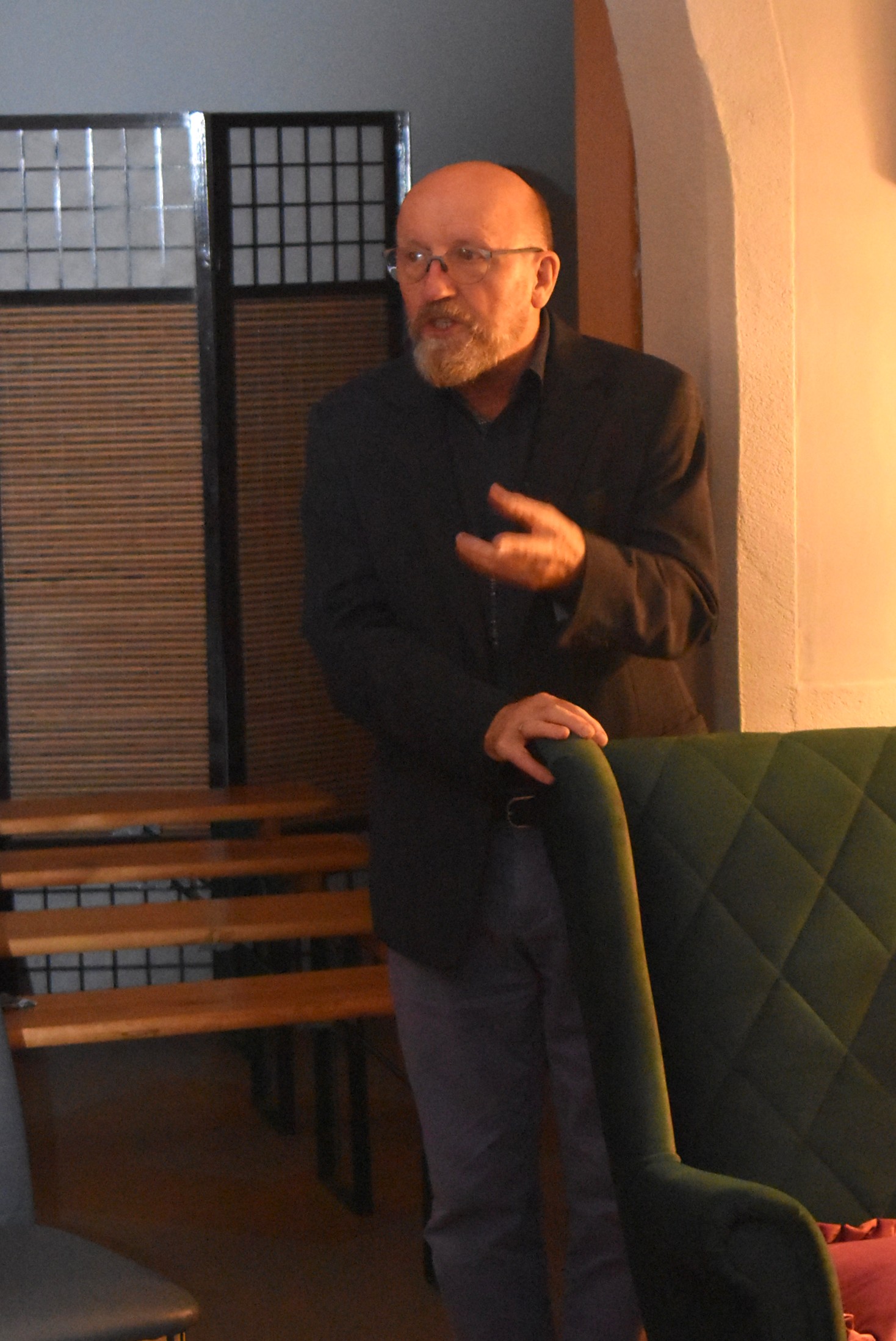 W ciepłej i pełnej humoru atmosferze artysta opowiadał o swojej drodze zawodowej, początkach w aktorstwie czy kulisach pracy nad znanymi rolami, m.in. Papkina, Czerepacha, Norka. Z dużym dystansem i autoironią dzielił się anegdotami z planu, opowiadał o aktorskim warsztacie, a także o swoich pozazawodowych pasjach, takich jak szycie ubrań czy pieczenie ciast.