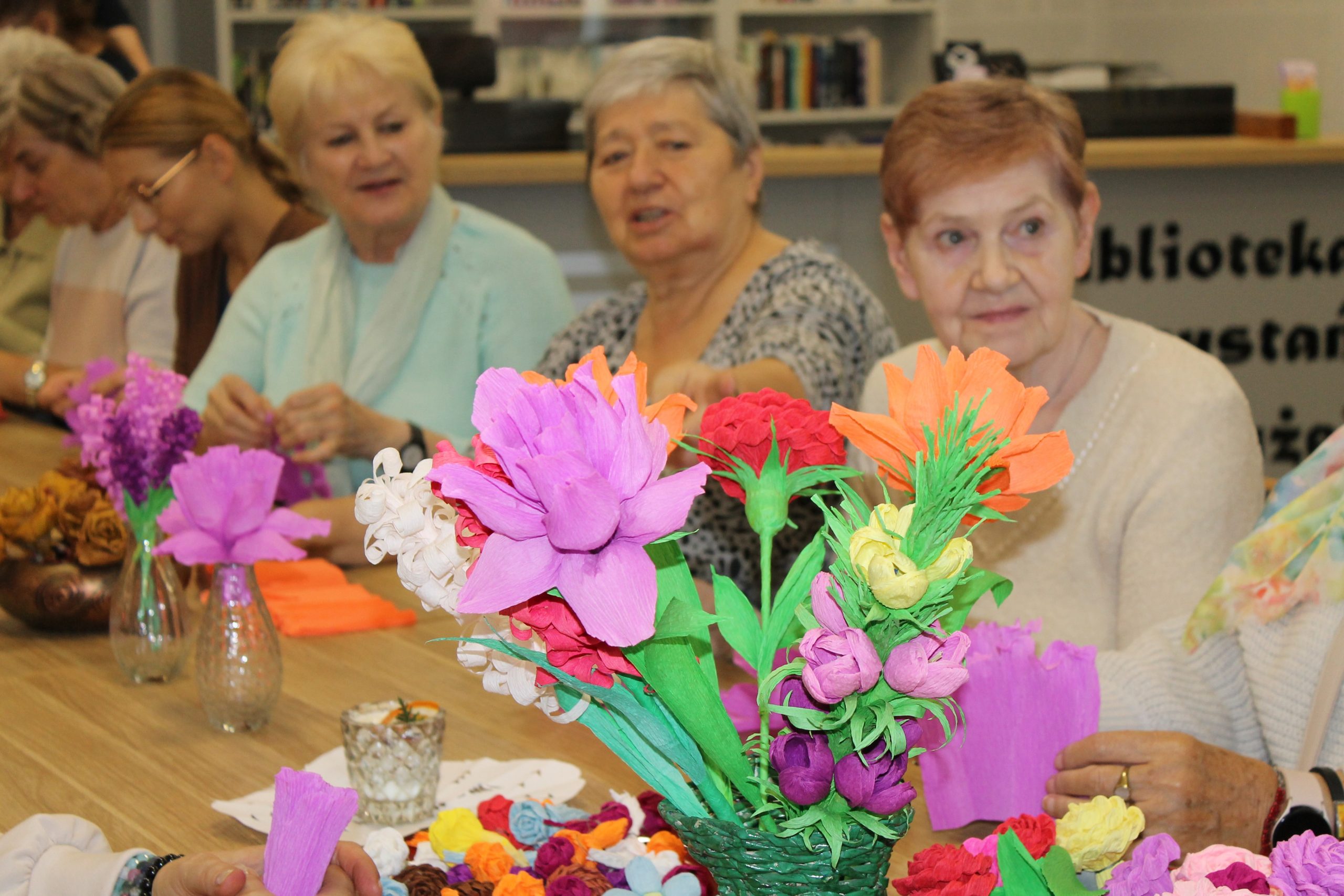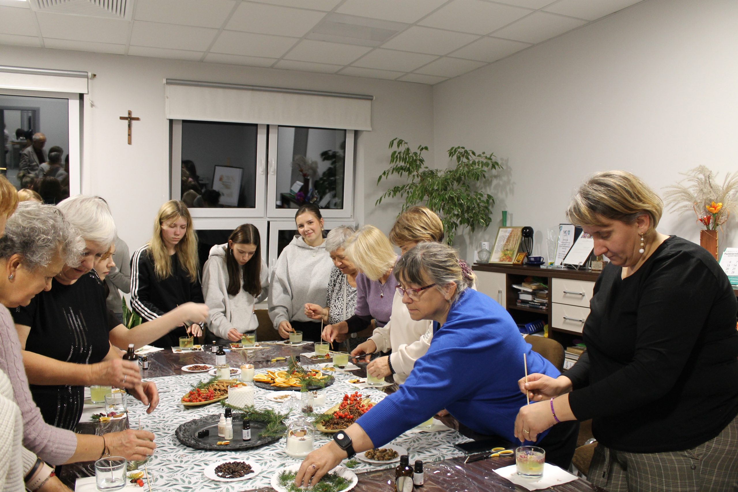 W programie imprezy znalazły się warsztaty florystyki papierowej, które poprowadziła pani Ewa Mundzik, oraz warsztaty tworzenia świec zorganizowane przez naszą koleżankę Justynę Szulc.