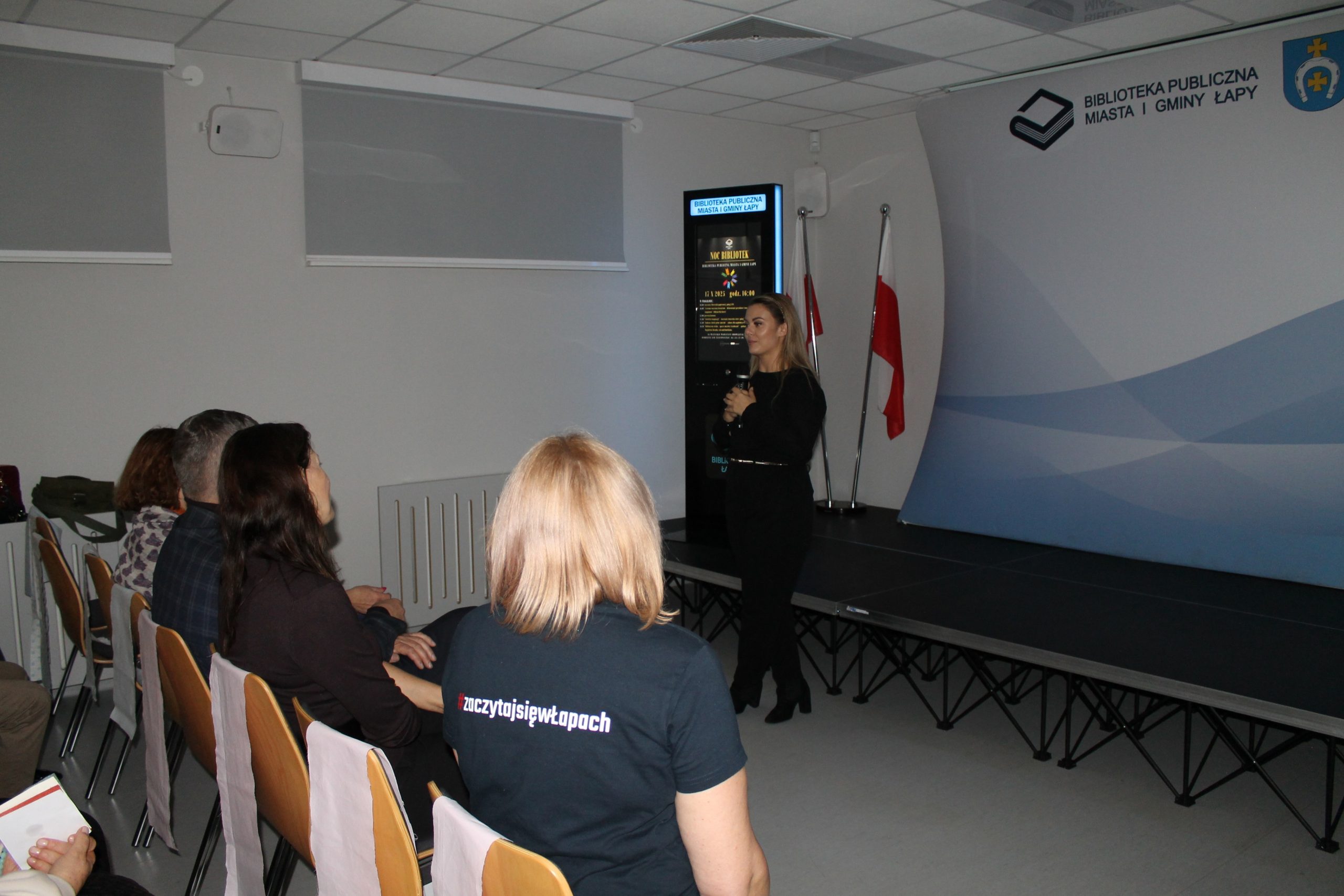 Na zakończenie wieczoru odbyło się spotkanie pt. „Biblioteczny relaks – spacer zmysłów i wyobraźni”, które poprowadziła pani Magdalena Skrouba z MS Studio Fizjoterapii. Uczestnicy mieli okazję zatrzymać się na chwilę, wsłuchać w siebie i przenieść w świat wyciszenia i refleksji.