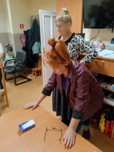 2. Kolejną zabawą była gra ,,Literackie imię" wzorowana na zabawie ,,Zgadnij kim jesteś". Każdy z uczestników z przytwierdzoną do czoła tabliczką z imieniem i nazwiskiem bohatera literackiego próbował odgadnąć, ,,kim jest". Izabelą Łęcką, Balladyną, czy może Odyseuszem? Nie było łatwo, ponieważ drużyna na każde zadane przez odgadującego pytanie mogła odpowiedzieć tylko TAK lub NIE :)
