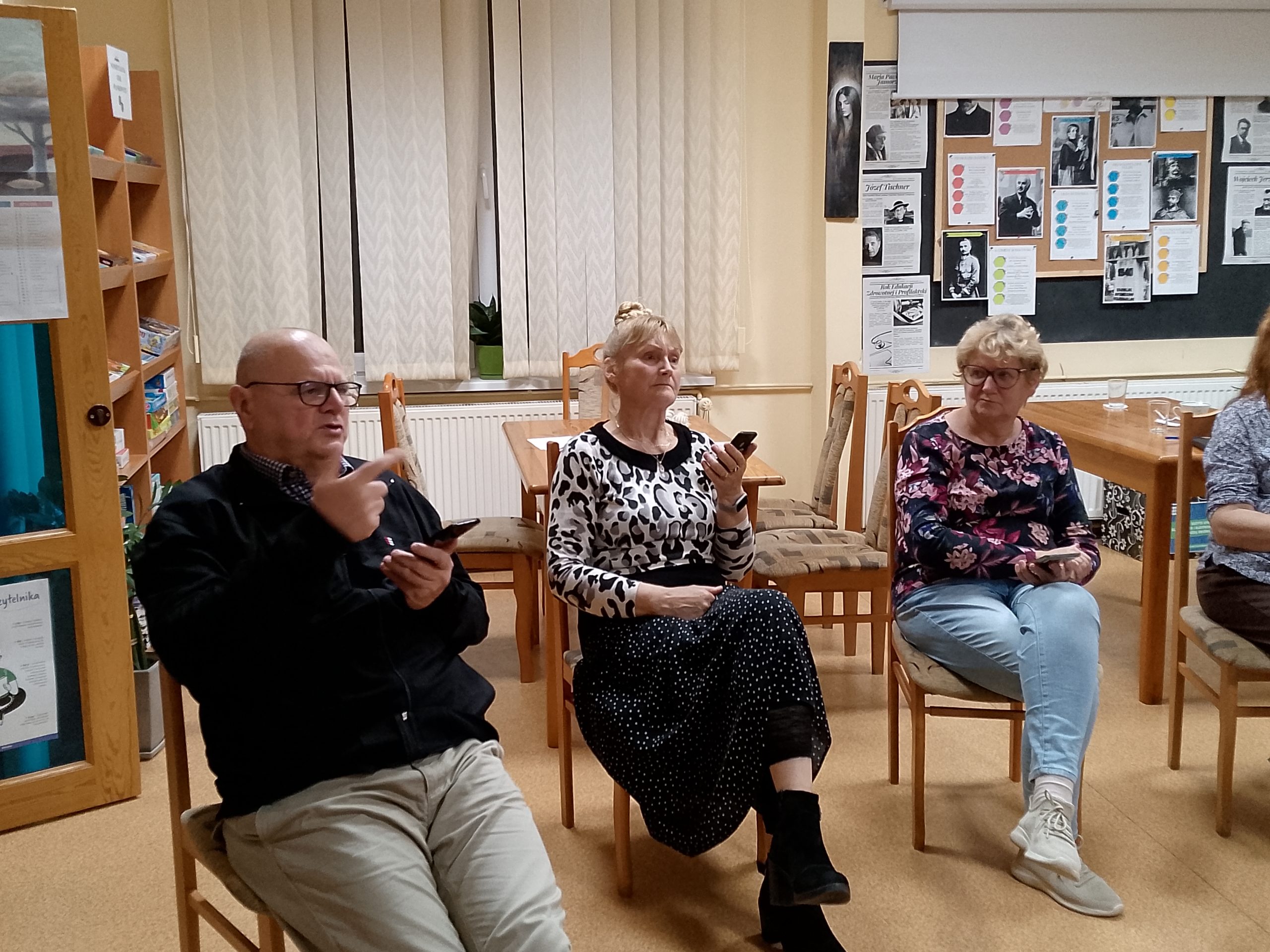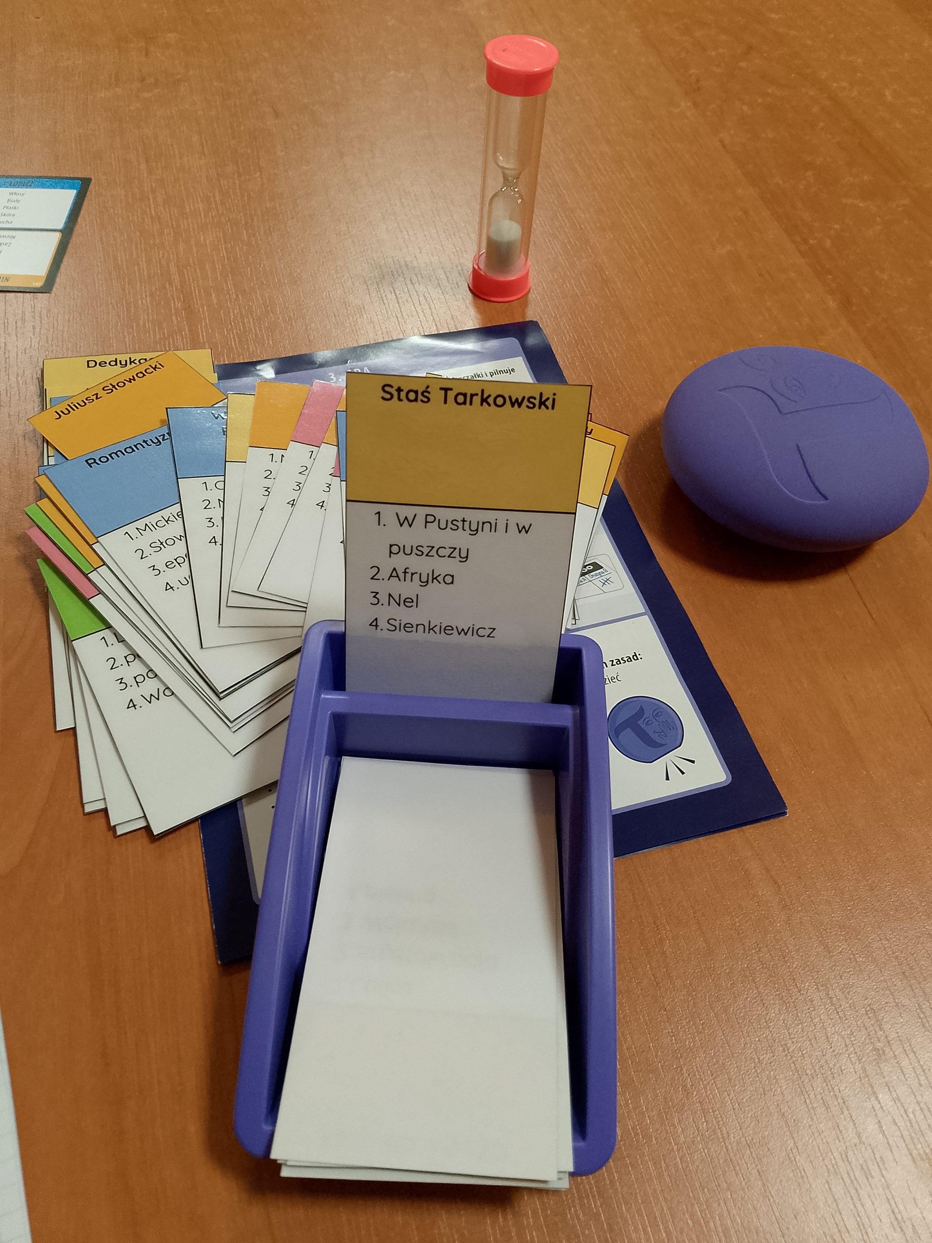 1. Bawiliśmy się słowem grając w ,,Literackie Taboo". Jak przekazać swojej drużynie hasło ,,Staś Tarkowski" nie używając zwrotów: ,,W pustyni i w puszczy", Afryka, Nel czy Sienkiewicz? Pomimo presji czasu(który odmierzała klepsydra) nasi czytelnicy doskonale sobie z tym poradzili. Udało im się odgadnąć wszystkie przygotowane hasła, a śmiechu było co niemiara :)