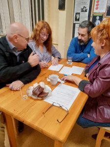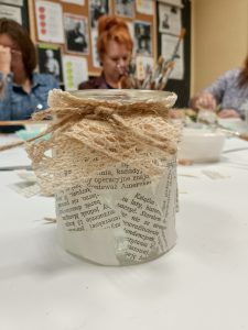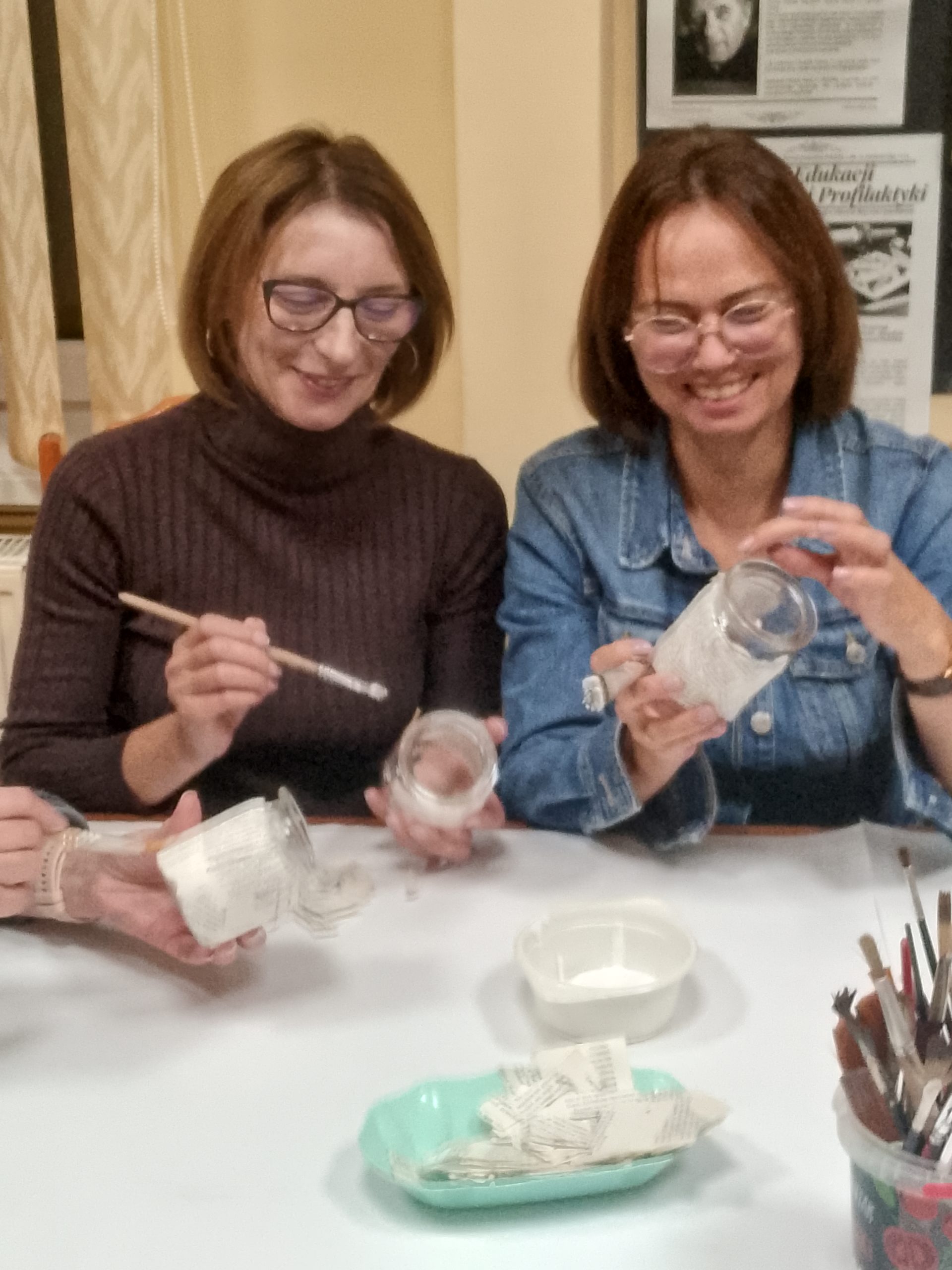 7. Po pysznej kolacji, nasi uczestnicy przystąpili do ostatniej aktywności. Były to warsztaty artystyczne ,,LAMPIONY ZE STARYCH KSIĄŻEK", którymi rozświetliliśmy naszą bibliotekę, a także (wracając do domu) ulice naszych miast ;)