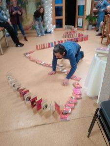 6. Kolejne zadanie wymagało koncentracji i nie lada zdolności! Uczestnicy zostali poproszeni o ułożenie jak najdłuższego książkowego domina:) Do rekordu Guinnessa, który wynosi 5580 książek trochę nam zabrakło, ale rezultat i tak był imponujący!