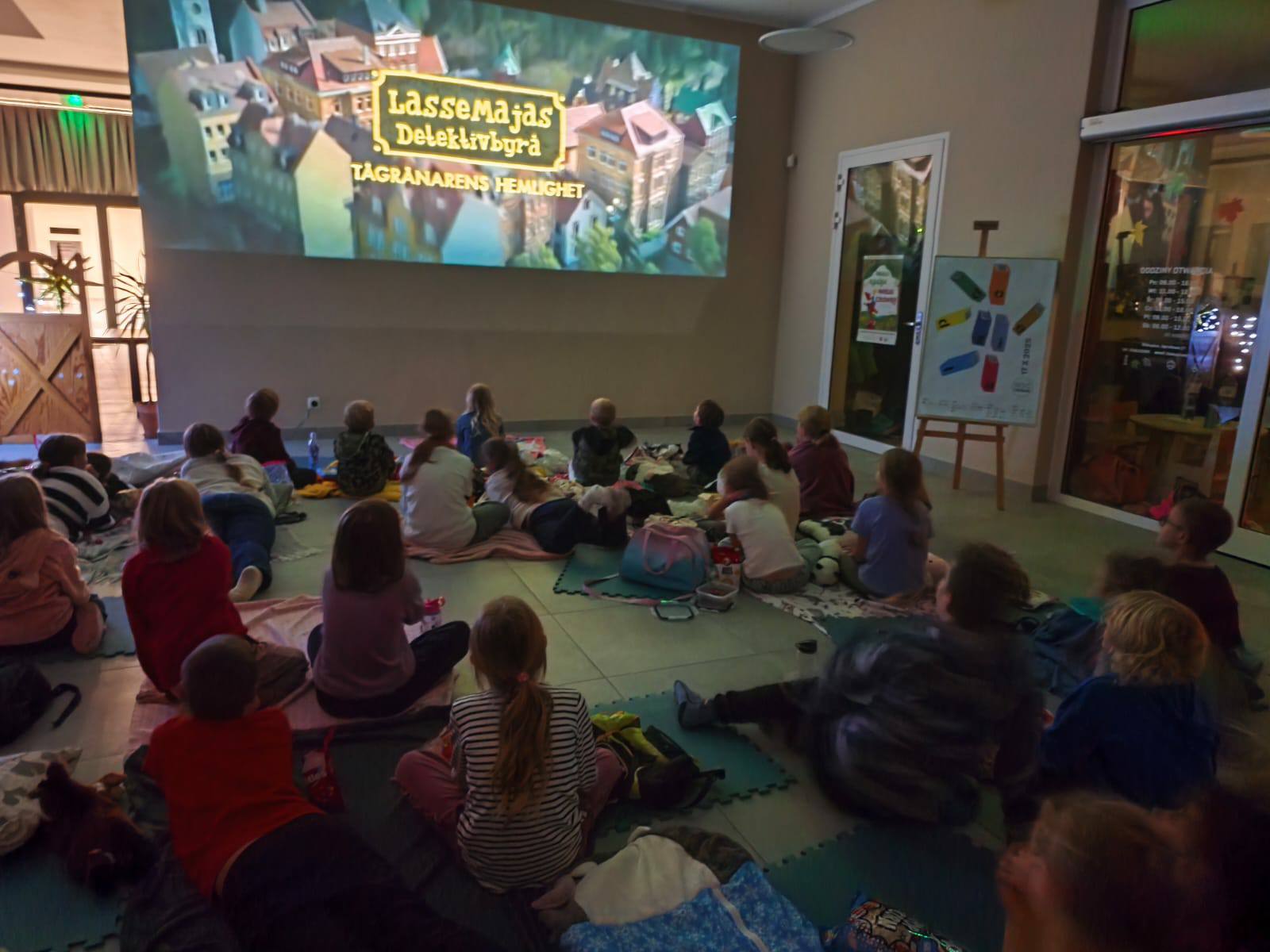 Na zakończenie wieczoru czekała na dzieci filmowa niespodzianka, seans z serii "Biuro Detektywistyczne Lassego i Mai: Rabuś z pociągu"