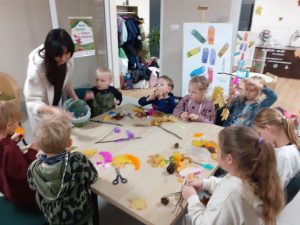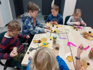 Potem przeszedł czas na artystyczne szaleństwo - jesienna makrama z kolorowych liści, szyszek, kasztanów. Powstały małe dzieła sztuki! 🎨🪁