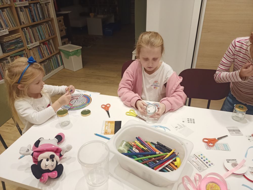 • Kącik plastyczny dla dzieci i młodzieży – tworzenie zakładek do książek, kolaży inspirowanych ulubionymi bohaterami literackimi.