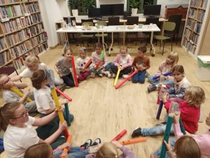Czy wiecie, że na rurkach można grać? Dzieci uczestniczące w Nocy Bibliotek wiedziały i stworzyły niezwykłe dzieło muzyczne. Odkryły rytm, melodię i dobrą zabawę w zupełnie nowym wymiarze.