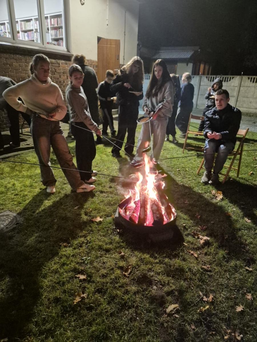 Po ciężkiej pracy nie mogło zabraknąć smacznego posiłku. Jesienna aura sprzyjała ognisku, zajadaniu pysznych kiełbasek i grzaniu się przy cieple ognia.