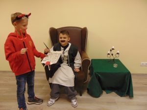 5.Dzieci w przebraniach odgrywają krótką scenkę o Maćku Borkowicu i diable Borucie