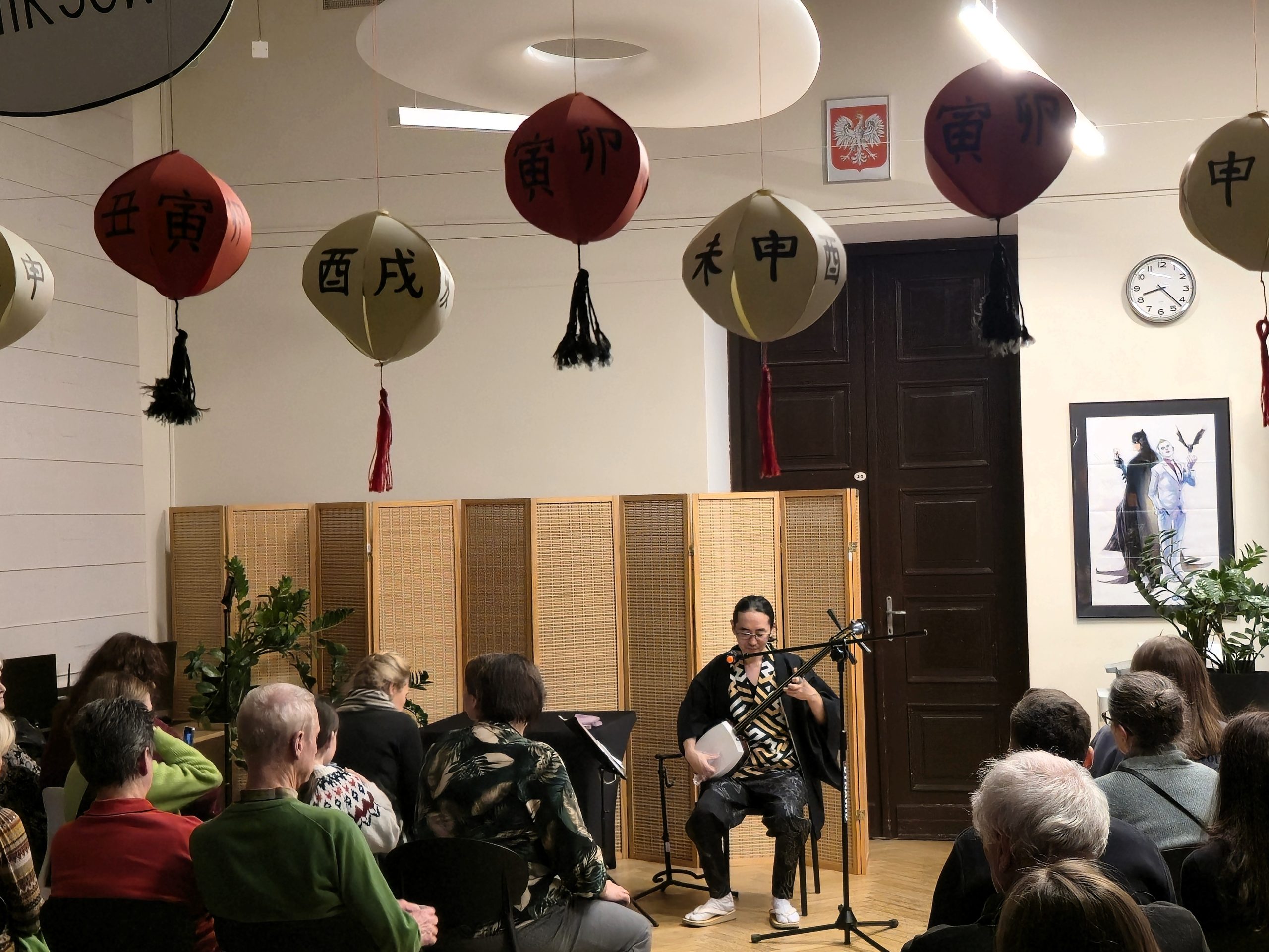 20:10-21:10 Koncert tradycyjnej muzyki japońskiej w wykonaniu Yokoe Masato (shamisen)