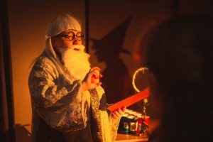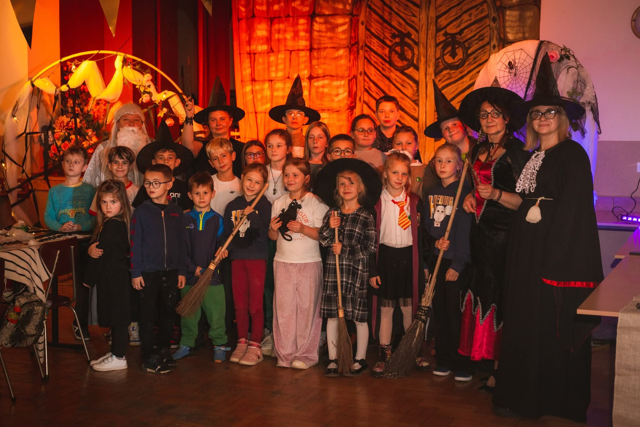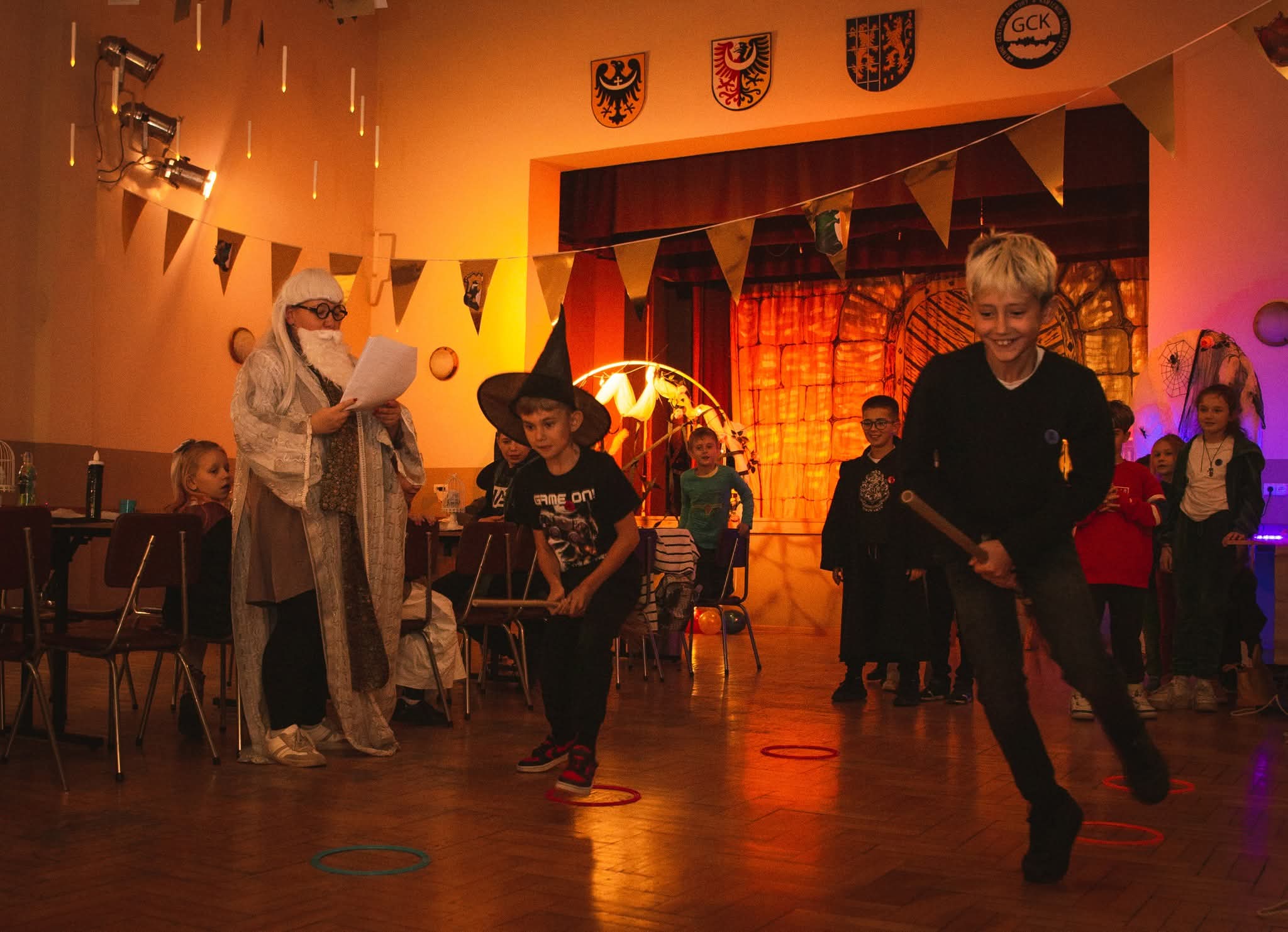 Dekoracje, ścieżka magiczna, gadżety — np. różdżki, czapki.