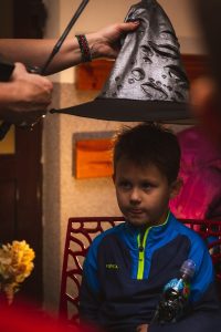 Aby wejść do budynku biblioteki, uczestnicy musieli najpierw przejść przez magiczny peron 9 i 3/4...a za peronem czekała prawdziwa magia- migoczące świece, dźwięki filmowej muzyki. Każdemu uczestnikowi została nałożona Tiara Przydziału aby został przydzielony do jednego z czterech domów.