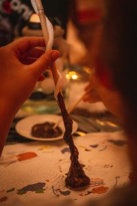 W sali głównej odbyły się warsztaty tworzenia różdżek, następnie młodzi czarodzieje wzięli udział w zajęciach z tworzenia eliksirów.