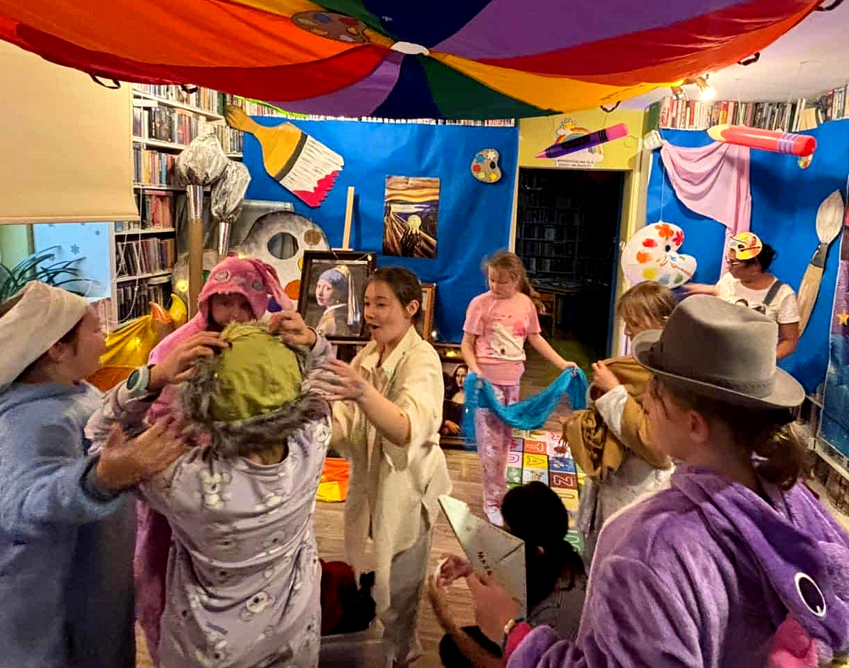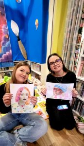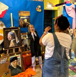 Odgadywały artystyczne zagadki, przeglądając wcześniej licznie zgromadzone książki z dziedziny sztuki i malarstwa. Stylizowały się na postacie ze słynnych obrazów, pozowały do wesołych zdjęć. Miały okazję malować ogromne kolorowanki XXL, specjalnie na tą okazję zaprojektowane i wykonane.