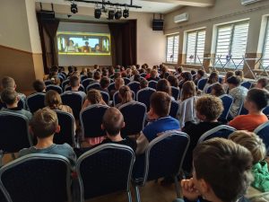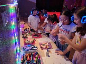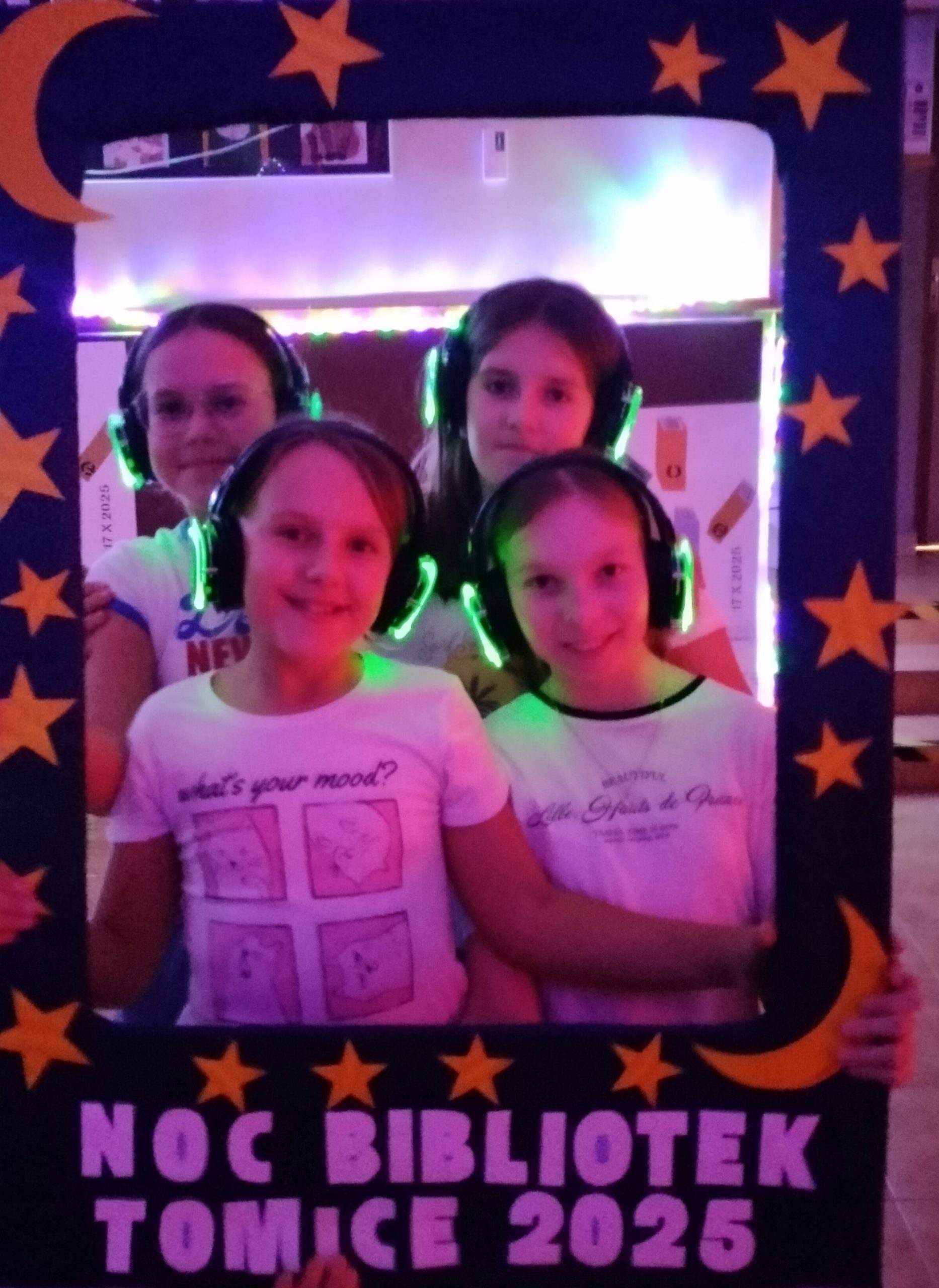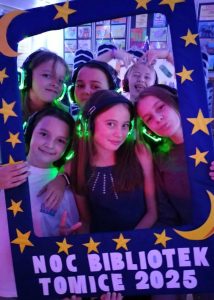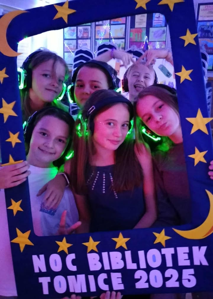 Tegoroczna tomicka Noc Bibliotek obfitowała w różne atrakcje. Dla młodzieży przygotowaliśmy Silent Disco, które porwało wszystkich do tańca w rytmie ulubionej muzyki. Uczestnicy mogli również wziąć udział w grze bibliotecznej „Tropem Wielkich Dzieł”, w której śladami znanych dzieł odkrywali zagadki ukryte między bibliotecznymi regałami. Nie zabrakło też przestrzeni dla twórczej ekspresji – każdy mógł stać się artystą i stworzyć własne dzieło sztuki. W ramach naszego udziału w Nocy Bibliotek zaprosiliśmy także dzieci na projekcję filmu jednej z ulubionych serii młodych czytelników – „Biuro Detektywistyczne Lassego i Mai. Rabuś z pociągu”. Czy dzielnym detektywom udało się schwytać tajemniczego złoczyńcę ze stacji kolejowej w miasteczku Valleby? O tym mogli przekonać się nasi młodzi widzowie. To była niezwykle udana noc – pełna radości, zabawy, kreatywności i wspólnego odkrywania magii książek. Wydarzenie sprzyjało integracji, budowaniu więzi i pokazało, że biblioteka to miejsce, gdzie wszystko może się zdarzyć.