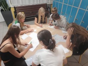 Po wytężonej pracy uczniowie odpoczywali we własnym gronie. Po odpoczynku przyszedł czas na wspólne tańce i zabawy przy muzyce. Część uczniów zdecydowała się na rozgrywki sportowe i rozegrała mecz piłki siatkowej. Był też czas na regenerację, gry planszowe, karciane oraz czas z książką 😊