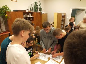 Na zakończenie wieczoru obejrzeliśmy film „Biuro detektywistyczne Lassego”, który idealnie wpisał się w detektywistyczny i literacki klimat wydarzenia. Po projekcji uczniowie mieli czas na gry stolikowe, rozmowy i czytanie książek. Po czym nastała cisza nocna, a po porannej pobudce i pracach porządkowych wspólnie zakończyliśmy spotkanie.