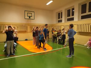 Kolejnym punktem programu była rywalizacja sportowa z książką – połączenie ruchu, refleksu i literackiej pomysłowości. Zabawy te przygotowała i poprowadziła p. Anna Lipiec. Po intensywnej zabawie nadszedł czas na wspólny posiłek, który dodał sił do dalszych aktywności.