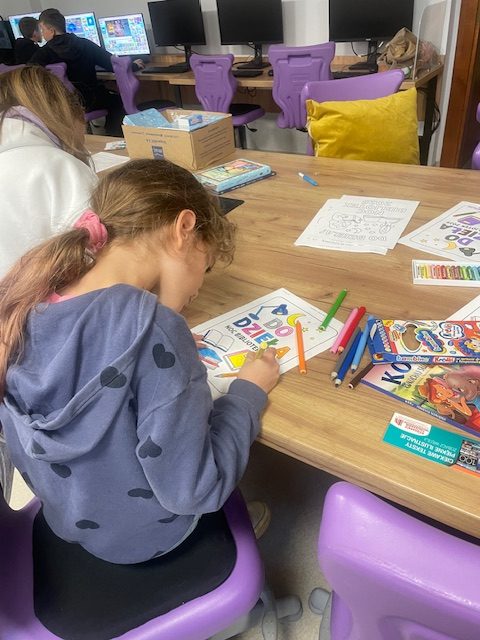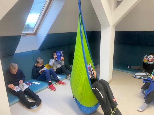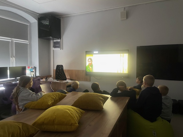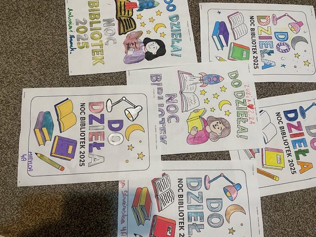 Na naszej Nocy Bibliotek uczniowie oglądali film "Rabuś z pociągu", w przerwie rozwiązywali krzyżówki i zagadki, wykonywali kolorowanki. Czytali swoje ulubione komiksy "Dog Man", udało nam się zgromadzić wszystkie części w bibliotece.