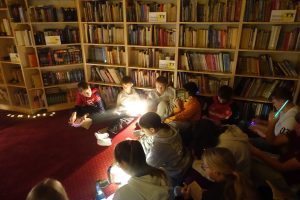 2. Czytanie "nocnych" fragmentów wybranych lektur szkolnych z młodszymi klasami SP Wicko w Mediatece.