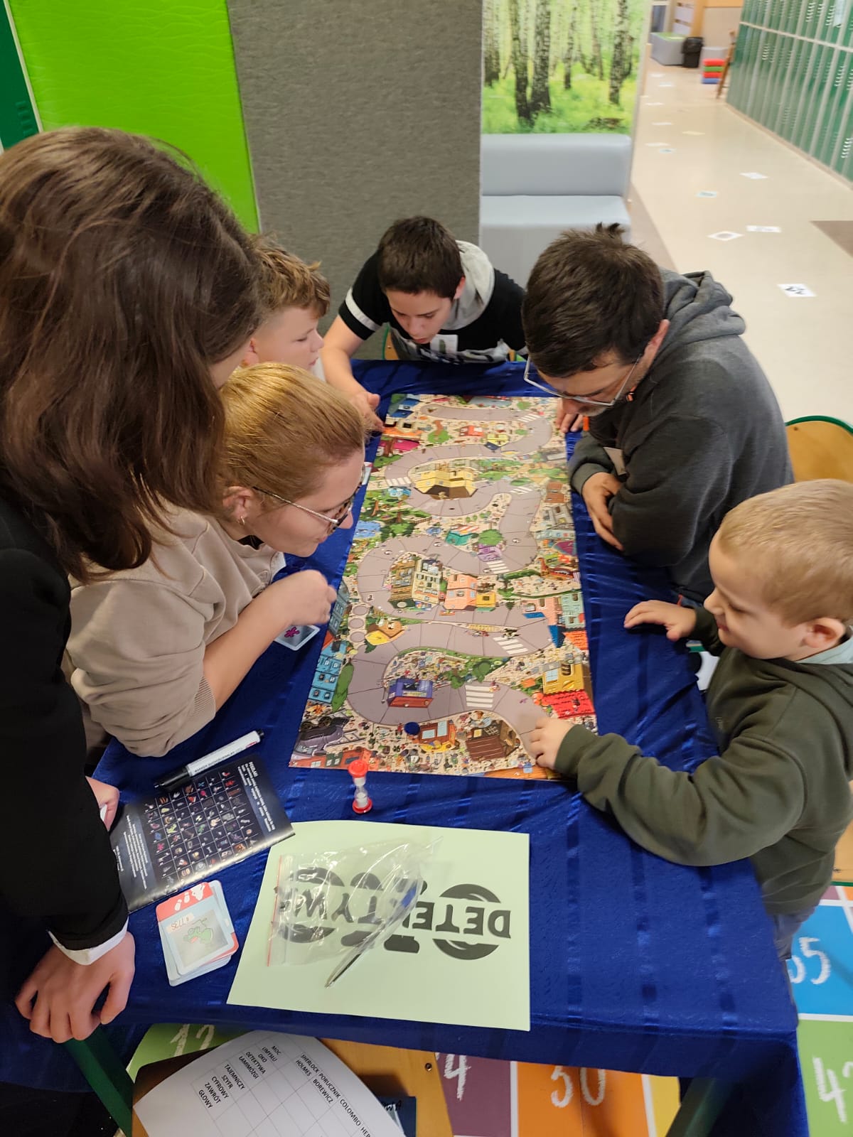 Finał imprezy to teleturniej-Mały Detektyw. Wspólny wieczór minął w mgnieniu oka, uczestnicy z niechęcią( ale z świetnymi humorami) opuszczali szkołę. Noc Bibliotek 2025 ocenili jako super imprezę, a największą nagrodą były wspólne chwile rodziców i dzieci.