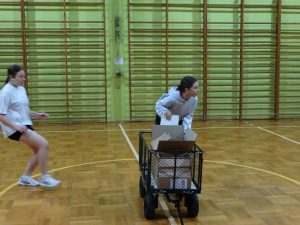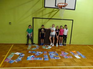 Wzorem lat ubiegłych spotkanie zaczęło się wieczorem od przedstawienia jej uczestnikom założeń akcji i obejrzeniem fragmentów koncertu inaugurującego Noc Bibliotek. Pierwszym zadaniem postawionym przed uczestnikami Nocy było stworzenie własnego opowiadania z pomocą nożyczek, kleju i starych, skasowanych podręczników. Uczniowie wycinając odpowiednie słowa i ilustracje stworzyli opowiadania, wykazując się przy tym nie tylko kreatywnością i zmysłem plastycznym ale i dużą dawką (niekiedy absurdalnego) humoru. W kolejnym zadaniu podręczniki posłużyły jako materiał do ułożenia z nich hasła „Do dzieła” przez dwie rywalizujące z sobą drużyny. W tej konkurencji liczyły się szybki bieg, determinacja, współdziałanie i precyzja wykonania napisu. Chwilę relaksu zapewnił krótki mecz siatkówki a następnie kolacja.