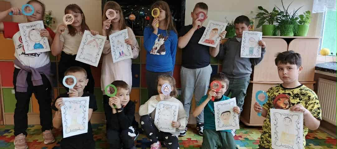 Spotkanie rozpoczęło się od rozmowy o pracy detektywa. Następnie odbyła się projekcja filmu "Biuro Detektywistyczne Lassego i Mai. Rabuś z pociągu”. Po seansie każdy miał okazję wyrazić własne zdanie na temat poczynań bohaterów, podejrzeń co do sprawcy kradzieży czy motywów, które nim kierowały. Później zastanawialiśmy się wspólnie po co jest rysopis, do czego może służyć, jakie cechy w nim rejestrujemy. Wykorzystując formularz z książki „Pamiętnik detektywa”  Martina Widmarka uczestnicy spotkania mogli sporządzić swój rysopis. Niestety, na wspólne głośne czytanie