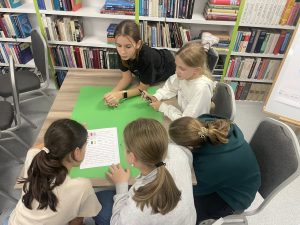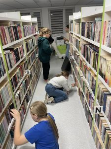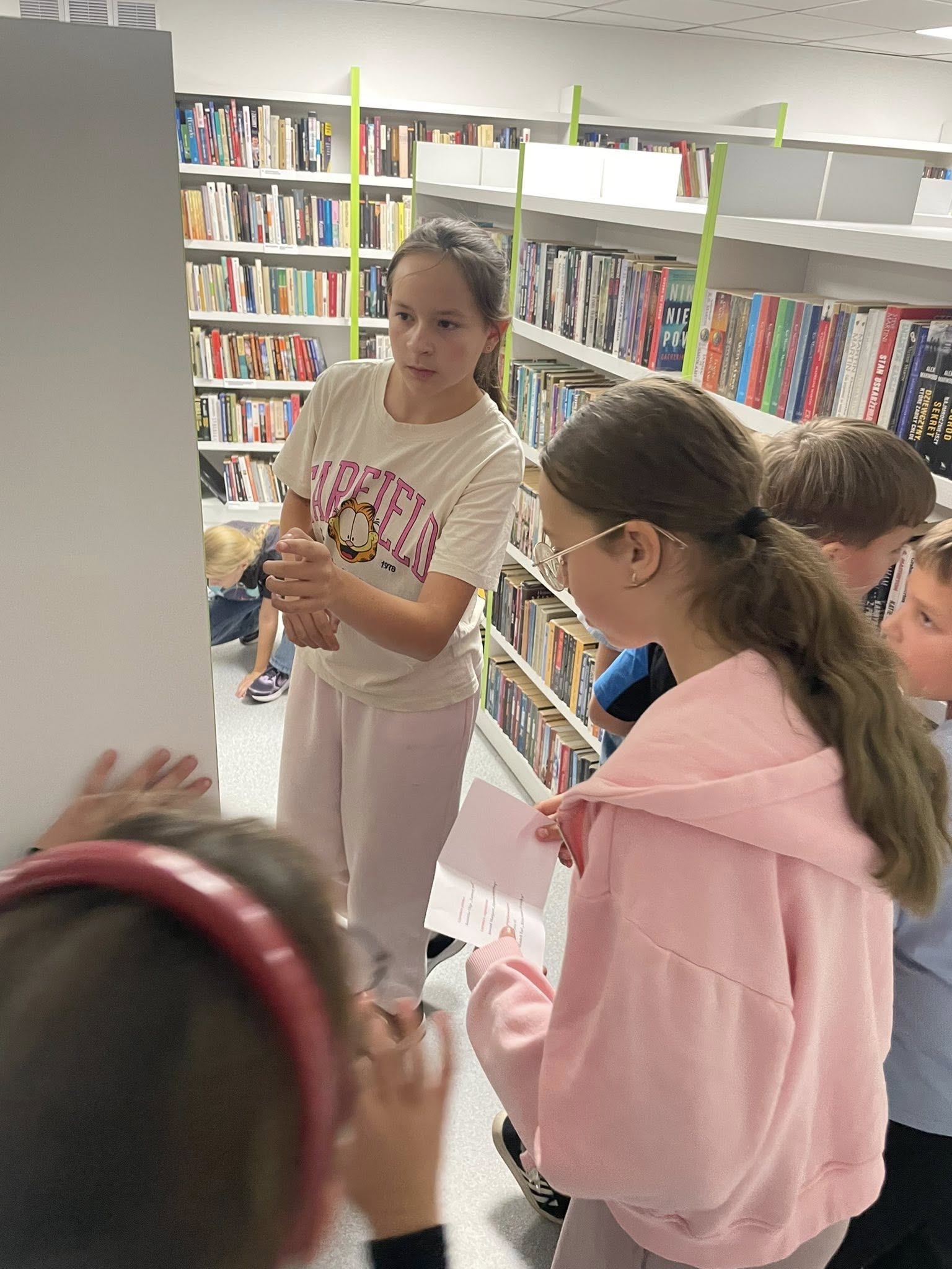 📚 Kolejnym punktem programu były literackie zagadki dla młodych czytelników! Uczniowie mieli za zadanie odnaleźć ukryte tytuły książek w opowiadaniu, zapamiętać 10 tytułów i ich autorów w określonym czasie, a następnie odszukać wskazane książki na półkach biblioteki. Zwycięska drużyna otrzymała voucher na pizzę – gratulacje! 🎉