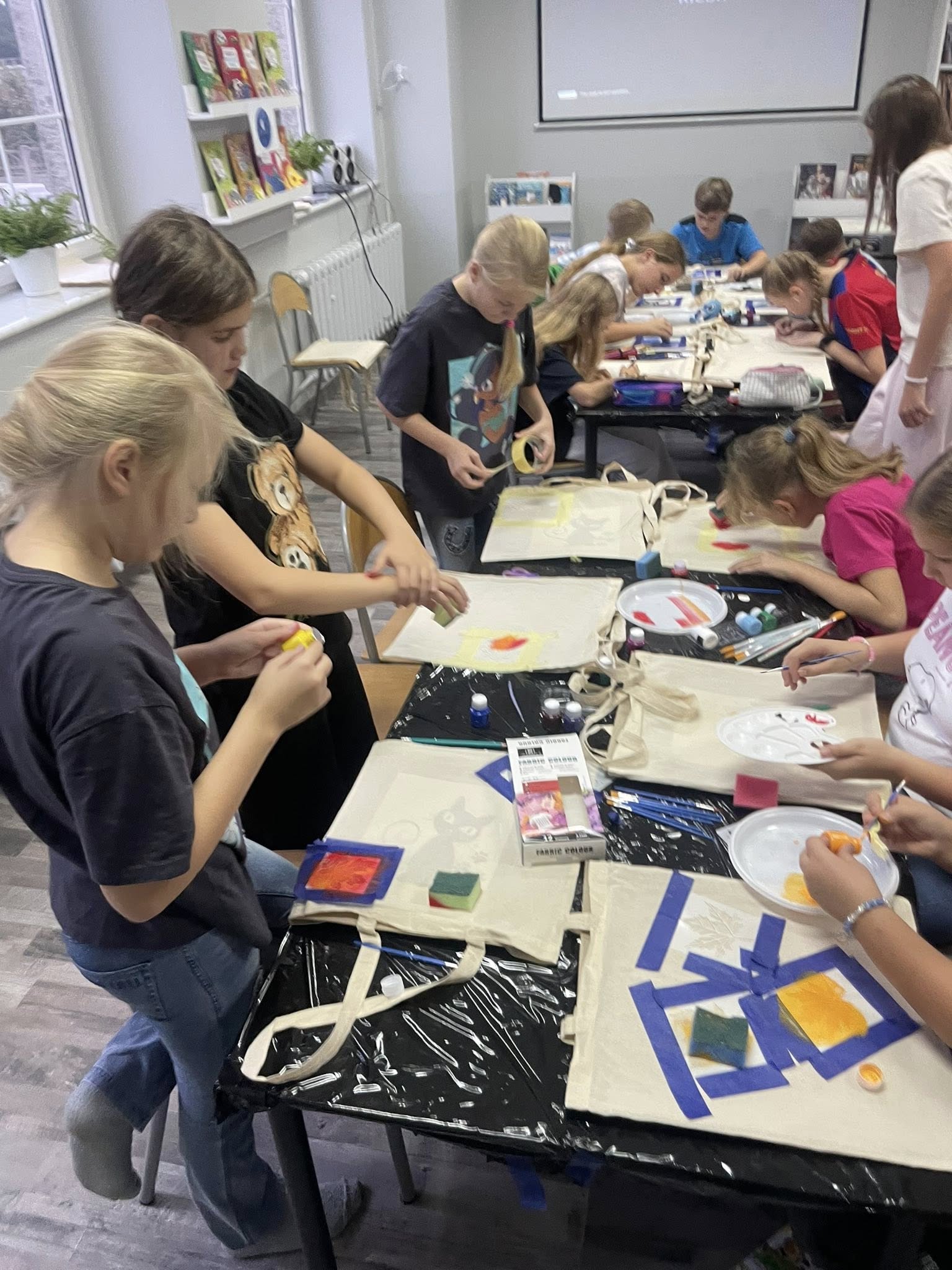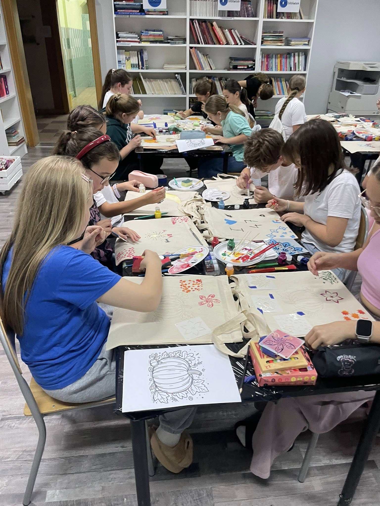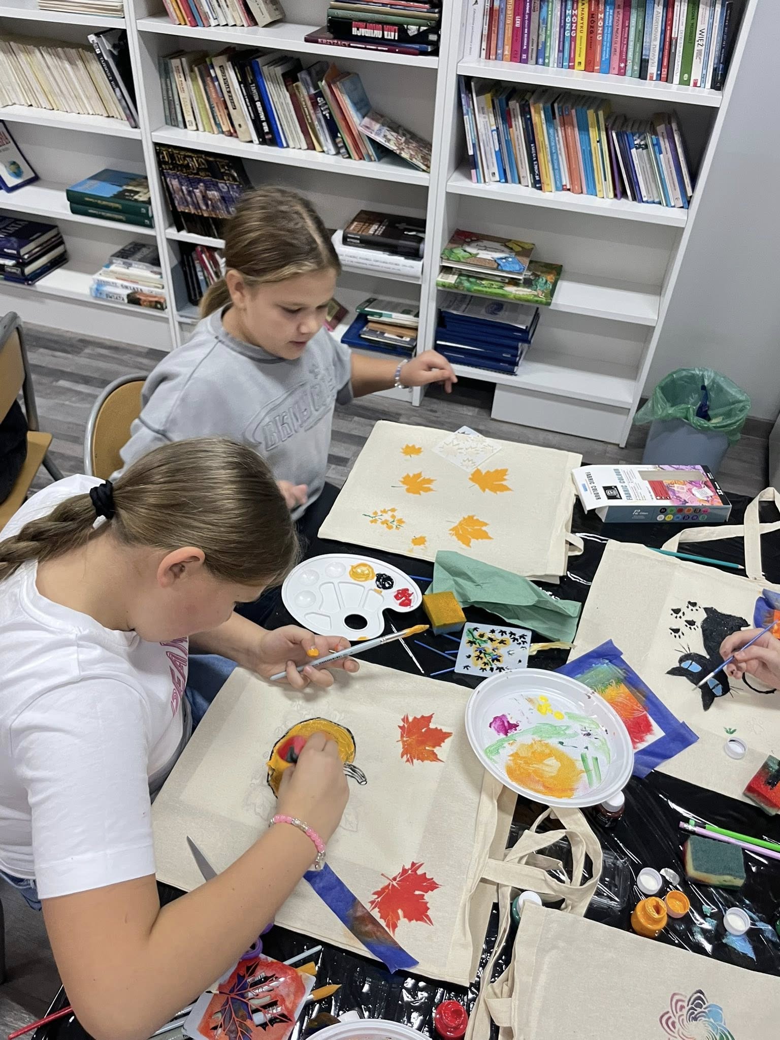 🎨 Zaczęliśmy w bibliotece szkolnej, gdzie odbyły się kreatywne warsztaty malowania ekotoreb. Każdy mógł zaprojektować własną torbę – uczniowie wykazali się ogromną wyobraźnią i pomysłowością, a ich dzieła były naprawdę wyjątkowe. Radości i uśmiechów nie brakowało!