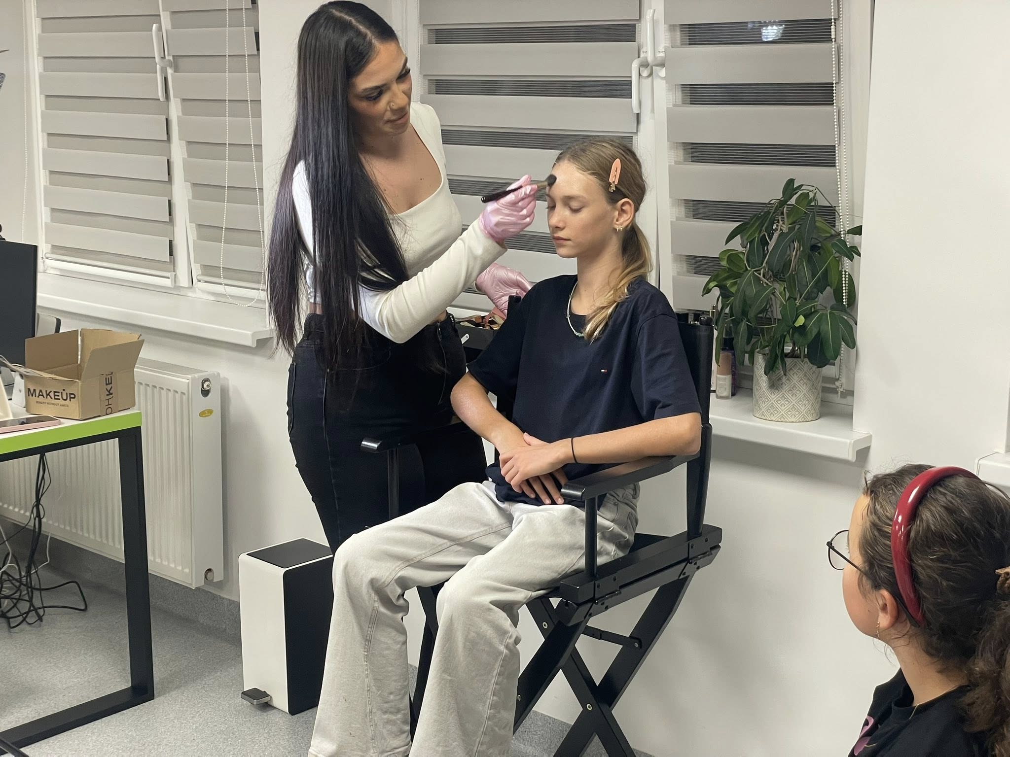 💄 Miłą niespodziankę sprawiła również nasza absolwentka Dagmara Kot, która przeprowadziła krótką pogadankę o pielęgnacji cery oraz zaprezentowała pokazowy makijaż na jednej z uczennic.