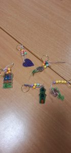 Podczas wydarzenia dzieci uczestniczyły w warsztatach tworzenia breloków, które samodzielnie kolorowały, a następnie wypiekały w piekarniku, obserwując, jak ich prace zmieniają kształt i stają się trwałymi pamiątkami.