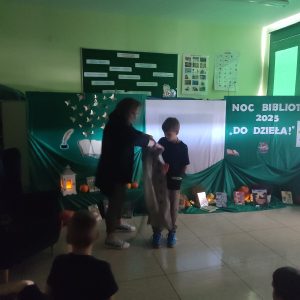 Tegoroczna Noc Bibliotek odbyła się pod hasłem „Do dzieła!” i jak co roku przyciągnęła wielu miłośników książek, dobrej zabawy i twórczych wyzwań. To wyjątkowe wydarzenie połączyło w sobie radość wspólnego czytania, naukę przez zabawę oraz magię literackiego świata, który na tę jedną noc ożył w murach naszej biblioteki.