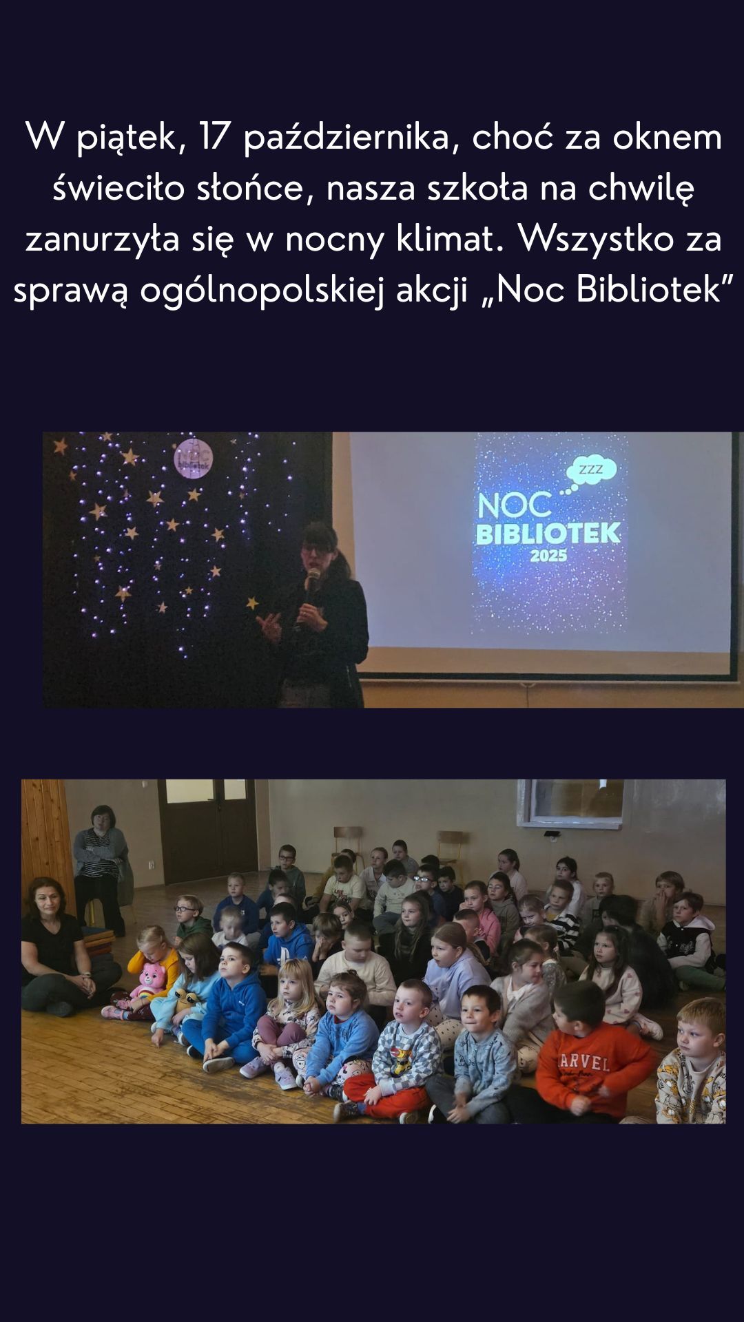 W piątek, 17 października, choć za oknem świeciło słońce, nasza szkoła na chwilę zanurzyła się w nocny klimat. Wszystko za sprawą ogólnopolskiej akcji „Noc Bibliotek”.